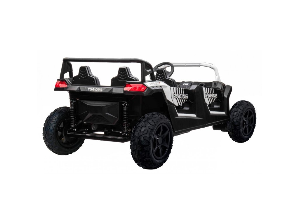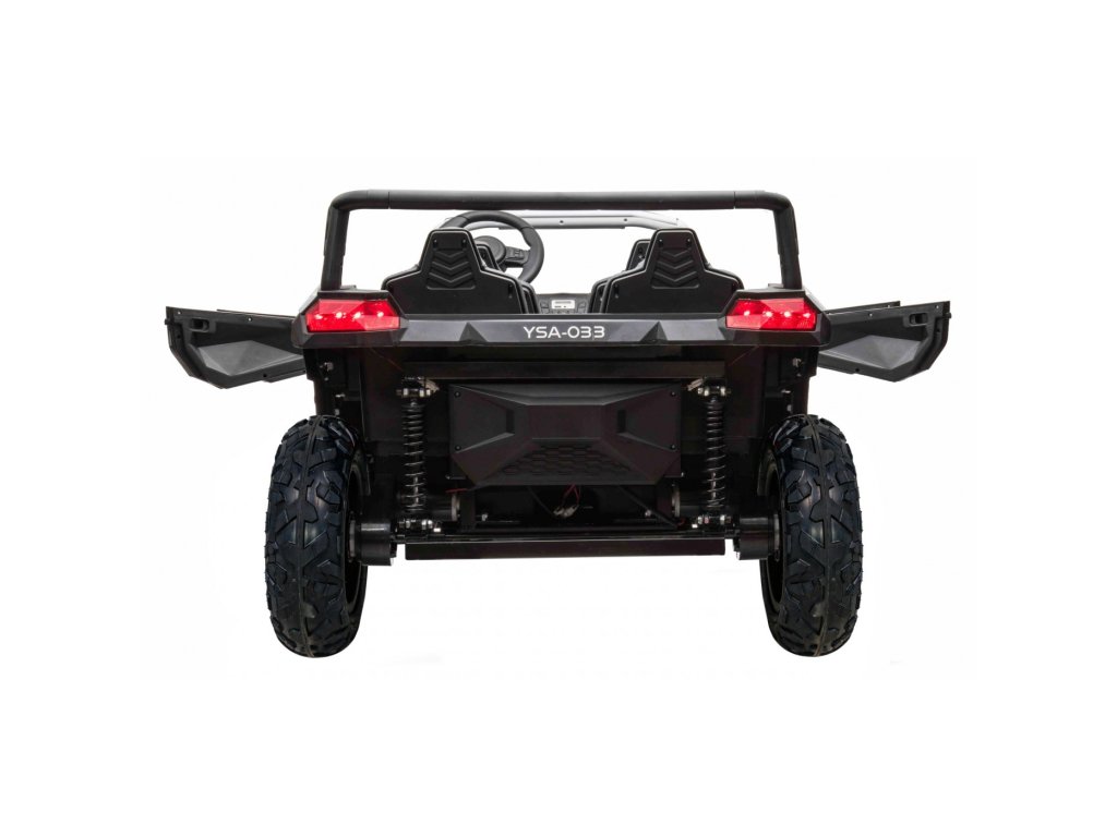 Mașina electrică de jucărie Buggy cu patru motoare puternice cu o putere totală de 600W nu trebuie să lipsească din nici un garaj pentru copii. Mașina de jucărie este alimentată de o baterie cu o capacitate 24 V 15,6 Ah (LI-ion). Sarcina maximă a căruciorului este de 120 kg. Un panou muzical cu MP3, Bluetooth, USB și melodii preînregistrate.
