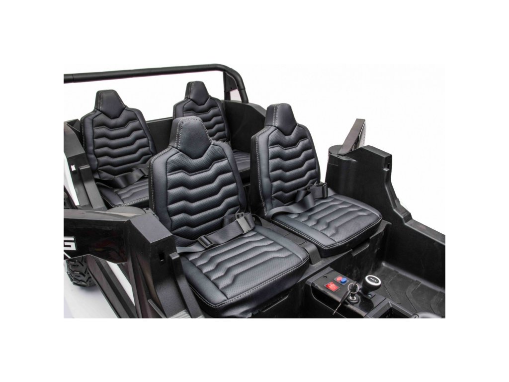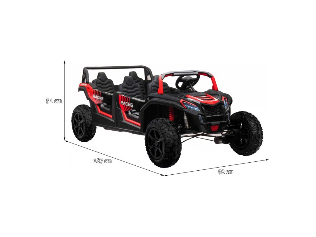 Mașina electrică de jucărie Buggy cu patru motoare puternice cu o putere totală de 600W nu trebuie să lipsească din nici un garaj pentru copii. Mașina de jucărie este alimentată de o baterie cu o capacitate 24 V 15,6 Ah (LI-ion). Sarcina maximă a căruciorului este de 120 kg. Un panou muzical cu MP3, Bluetooth, USB și melodii preînregistrate.