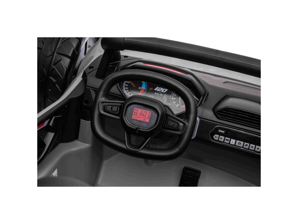 Mașina electrică de jucărie Buggy cu două motoare puternice cu o putere totală de 400W nu trebuie să lipsească din nici un garaj pentru copii. Mașina de jucărie este alimentată de o baterie de 24V 7Ah . Sarcina maximă a căruciorului este de 50 kg. În timpul călătoriei, panoul muzical cu MP3, Bluetooth, AUX și USB îl va interesa cu siguranță pe copil.