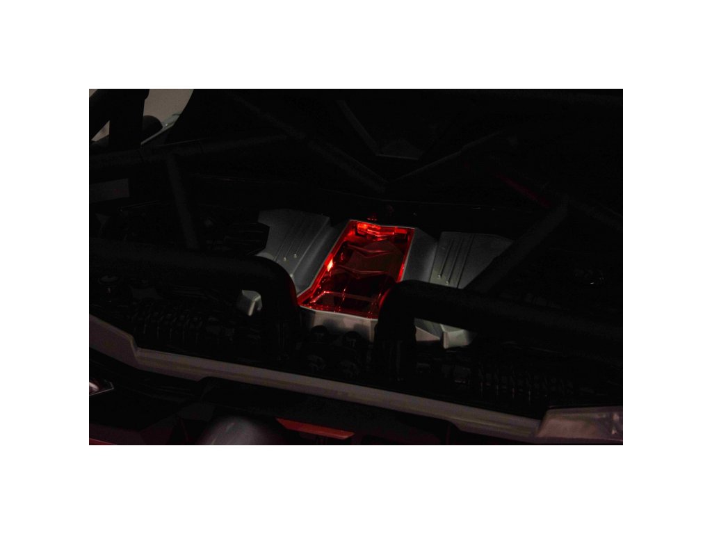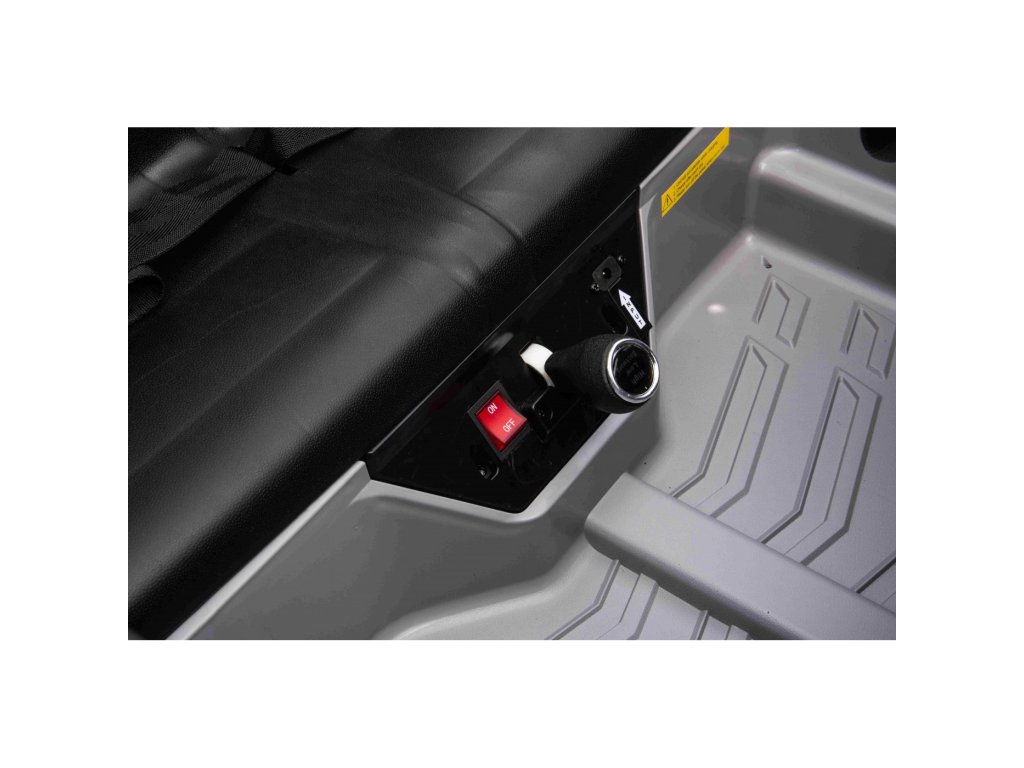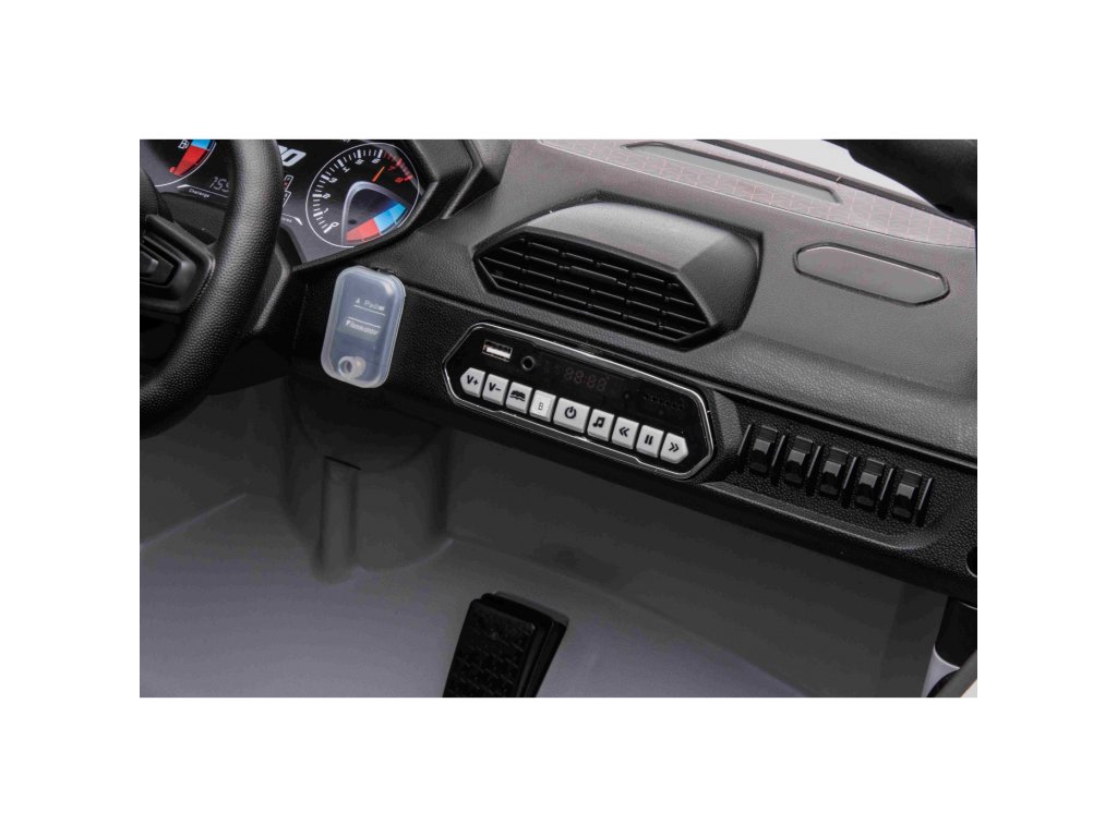 Puteți controla mașina de jucărie folosind o telecomandă care funcționează pe o frecvență de 2,4 GHz . Telecomanda are trei viteze și un buton de siguranță STOP , care oprește imediat mașina de jucărie atunci când este apăsată. Scaunul este acoperit cu piele ecologica si are centuri de siguranta .