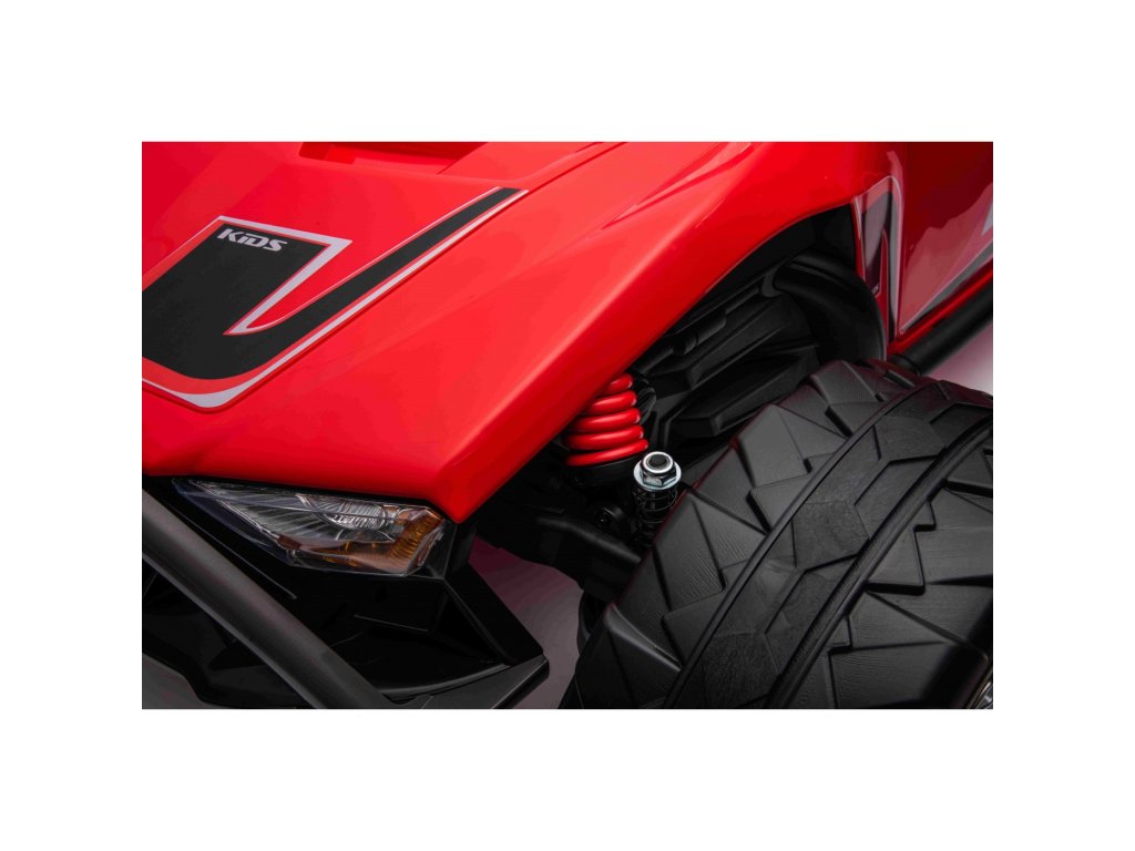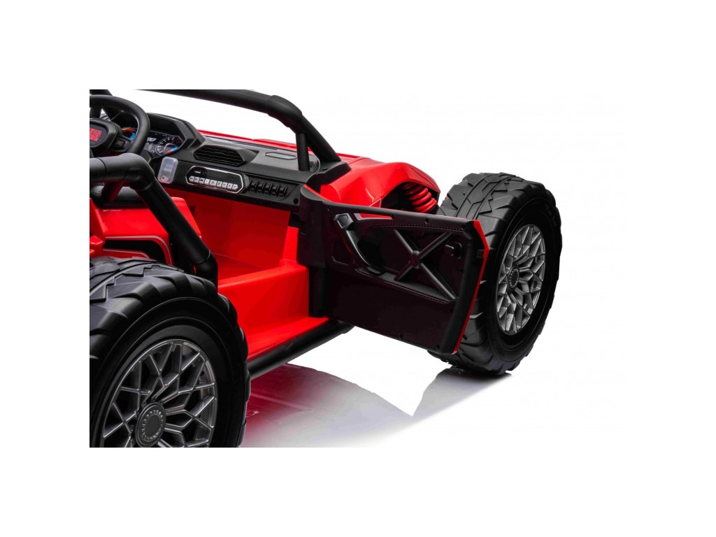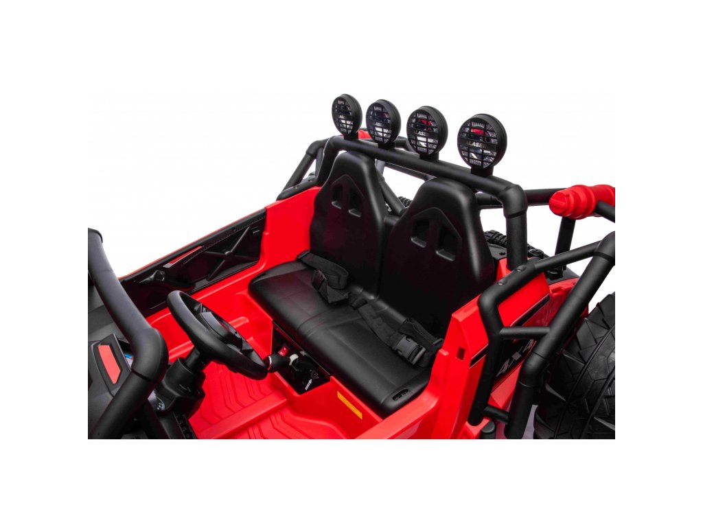 Mașina electrică de jucărie Buggy cu două motoare puternice cu o putere totală de 400W nu trebuie să lipsească din nici un garaj pentru copii. Mașina de jucărie este alimentată de o baterie de 24V 7Ah . Sarcina maximă a căruciorului este de 50 kg. În timpul călătoriei, panoul muzical cu MP3, Bluetooth, AUX și USB îl va interesa cu siguranță pe copil.