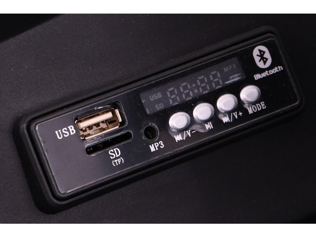 În producția mașinii electrice de jucărie, s-a acordat atenție celor mai mici detalii, precum centurile de siguranță, scaunul din piele, panoul muzical și efectele luminii.