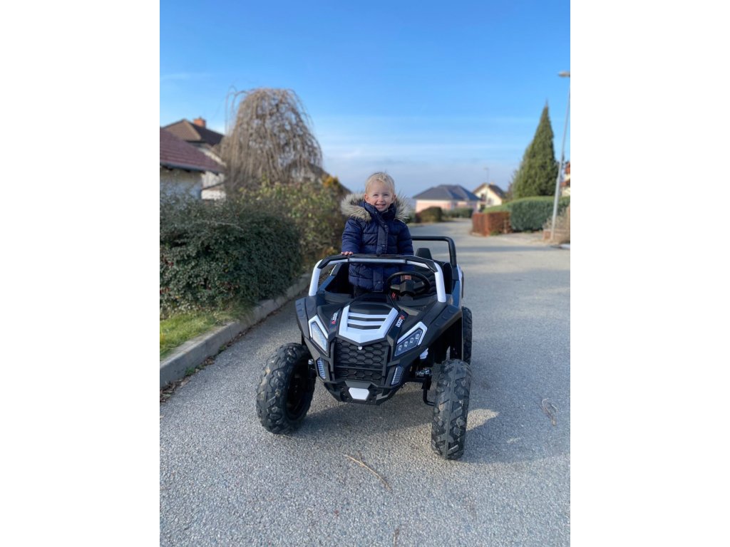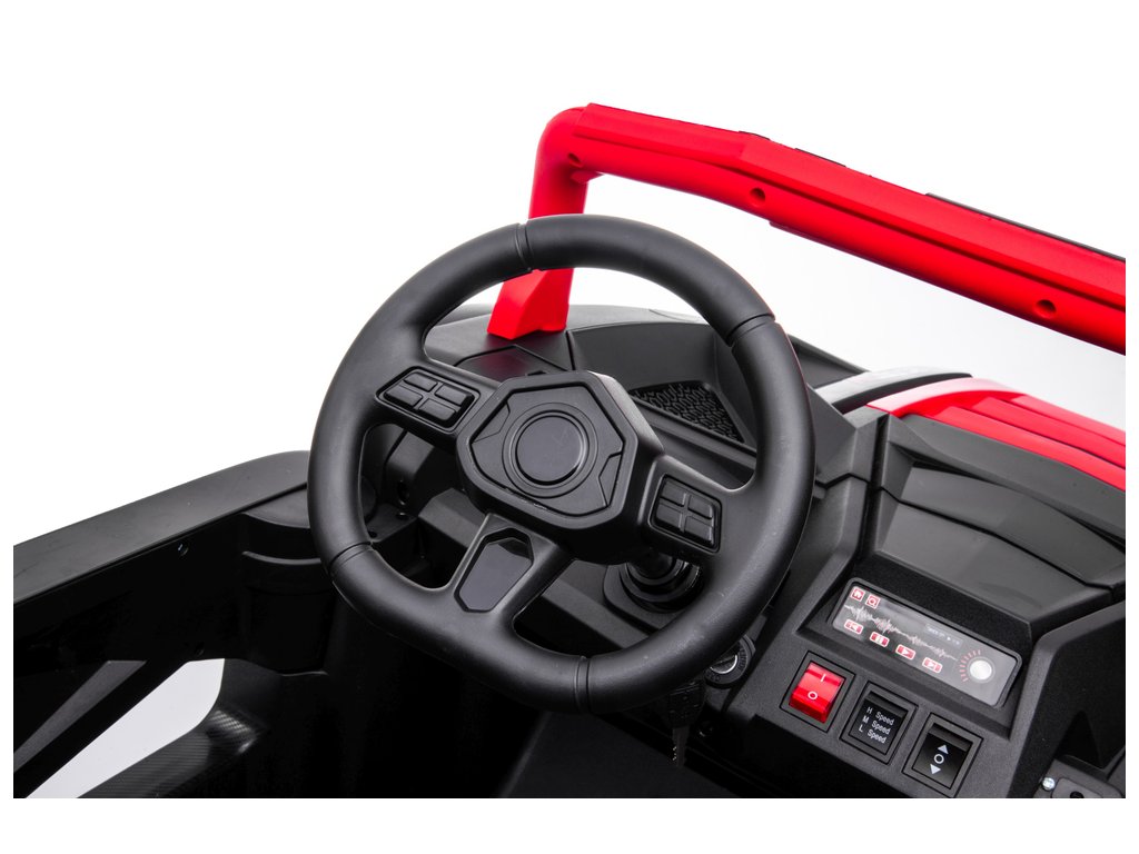 Mașina electrică pentru copii Buggy Strong 24V se remarcă prin roțile sale gonflabile masive și o capacitate de încărcare de până la 100 kg . Datorită capacității mari de transport și dimensiunii jucăriei, doi copii pot sta confortabil în ea. Scaunul este din piele ecologica .