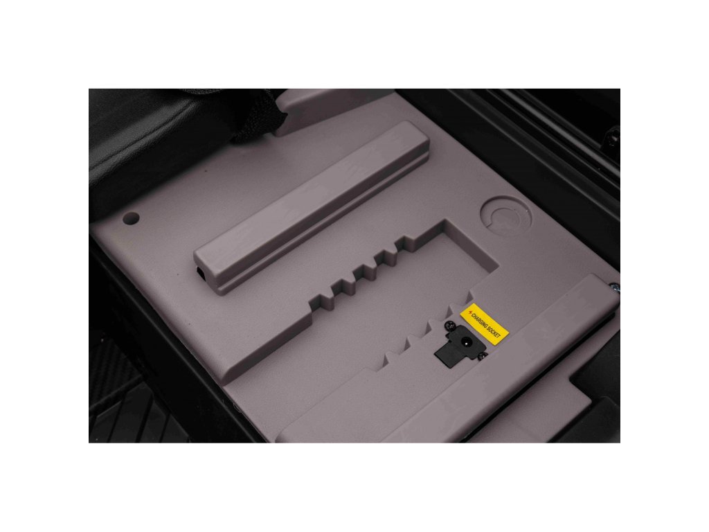 Puteți controla mașina de jucărie folosind o telecomandă care funcționează pe o frecvență de 2,4 GHz . Telecomanda are trei viteze și un buton de siguranță STOP , care oprește imediat mașina de jucărie atunci când este apăsată. Scaunul este acoperit cu piele ecologica si are centuri de siguranta .