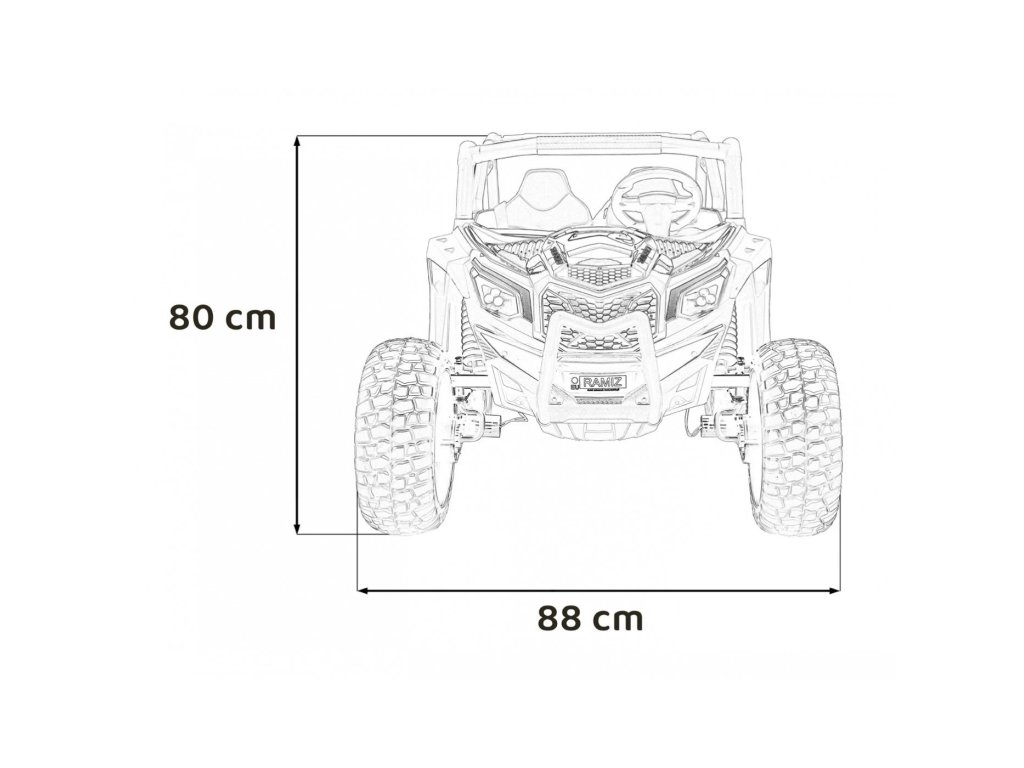 Mașina electrică de jucărie Buggy UTV cu motoare puternice cu o putere totală de 800W nu trebuie să lipsească din nici un garaj pentru copii. Mașina de jucărie este alimentată de o baterie de 24V 9Ah . Sarcina maximă a căruciorului este de 60 kg. În timpul călătoriei, panoul muzical cu MP3, Bluetooth și USB îl va interesa cu siguranță pe copil .