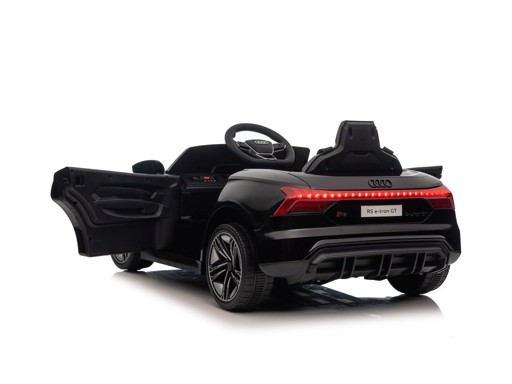 Mașina electrică Audi E-Tron GT are patru motoare cu o putere de 45W, ceea ce înseamnă că mașina are o tracțiune 4x4 . Roțile din spumă EVA și un scaun acoperit cu piele ecologică asigură o călătorie confortabilă. Panoul muzical cu MP3, USB, Bluetooth și Radio va face cu siguranță călătoria mai plăcută pentru copil . Capacitatea de transport a mașinii de jucărie este de 25 kg . Mașina de jucărie are iluminare LED față și spate, uși care se deschid și amortizoare spate.