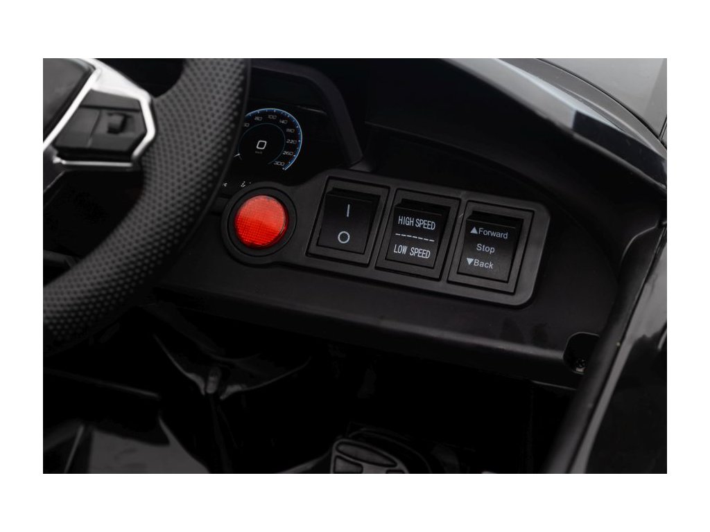 Mașina de jucărie poate fi controlată cu ajutorul unei telecomenzi, care poate fi folosită pentru a regla viteza vehiculului, pentru a schimba direcția de mers sau pentru a folosi butonul de siguranță Stop , care oprește imediat vehiculul. Vehiculul este echipat cu o funcție de frână automată, care este activată atunci când piciorul este eliberat de pedala de accelerație. În plus , centurile de siguranță vor avea grijă de siguranță.