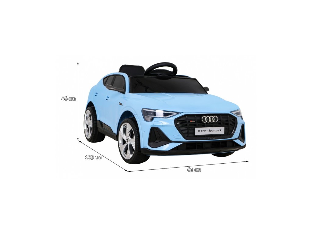 Mașina de jucărie electrică Audi E-Tron Sportback are patru motoare cu o putere de 2 5W, ceea ce înseamnă că mașina de jucărie are o tracțiune 4x4. Avantajul mașinii de jucărie este că are o tracțiune variabilă, ceea ce înseamnă că poți comuta între două și patru roți. Rotile din spuma EVA si un scaun din piele ecologica asigura o plimbare confortabila. Panoul muzical cu MP3, radio FM , Bluetooth, intrari pentru card SD, USB si AUX va face cu siguranta calatoria mai placuta pentru copil. Capacitatea de transport a mașinii de jucărie este de 25 kg . Mașina de jucărie are iluminare LED față și spate, uși care se deschid și amortizoare spate.