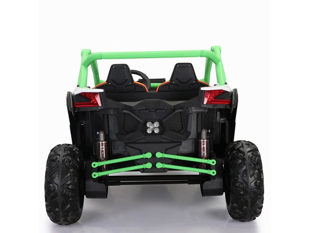 Mașina electrică de jucărie Buggy cu patru motoare cu o putere totală de 300W nu trebuie să lipsească din nici un garaj pentru copii. Mașina de jucărie este alimentată de o baterie de 24V 7Ah . Sarcina maximă a căruciorului este de 30 kg . În timpul plimbării, copilul va fi cu siguranță impresionat de panoul muzical cu MP3, Bluetooth, USB, AUX, slot pentru card SD și Radio .