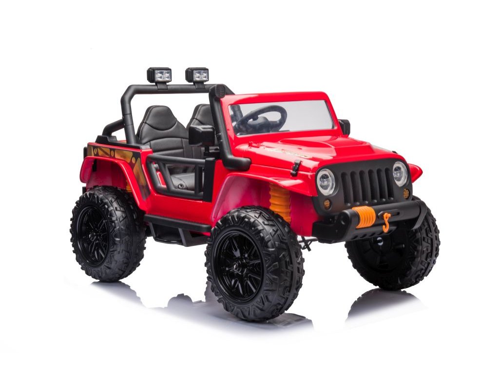 Mașina electrică Jeep 4Speed are patru motoare de 45W și o baterie de 12V 10Ah. Jucăria are un panou muzical cu melodii pre-redate, intrări USB și Bluetooth. Claxonul este situat pe volan. Mașina de jucărie este echipată cu lumini LED frontale. Mașina de jucărie este pornită cu cheia și veți auzi sunetele caracteristice ale motorului .