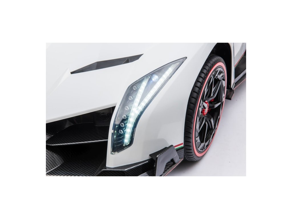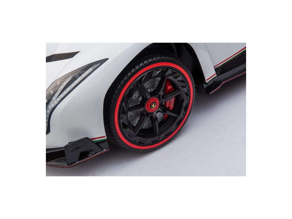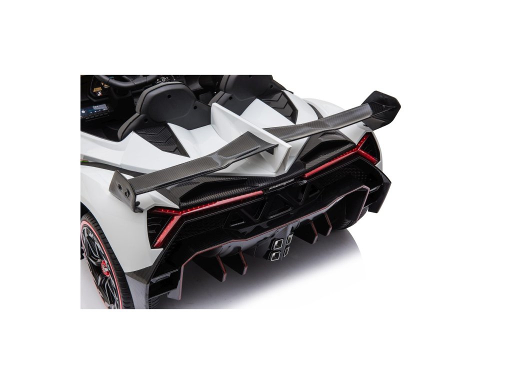 Mașina electrică de jucărie pentru copii Lamborghini Veneno este o combinație unică de design luxos, performanță și confort. Cu patru motoare de 45 W și două baterii de 12 V 7 Ah , oferă suficientă putere pentru conducerea rapidă înainte și înapoi la două viteze. Datorită funcției „pornire moale” , pornirea este lină și sigură chiar și pentru copiii mai mici.