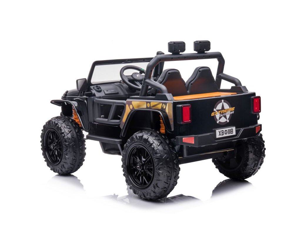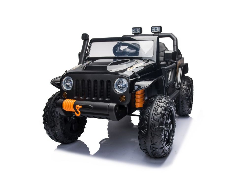 Mașina electrică Jeep 4Speed are patru motoare de 45W și o baterie de 12V 10Ah. Jucăria are un panou muzical cu melodii pre-redate, intrări USB și Bluetooth. Claxonul este situat pe volan. Mașina de jucărie este echipată cu lumini LED frontale. Mașina de jucărie este pornită cu cheia și veți auzi sunetele caracteristice ale motorului .