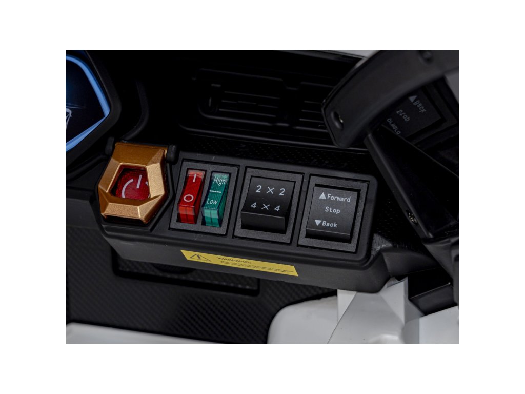 Mașina de jucărie poate fi controlată cu ajutorul unei telecomenzi, care poate fi folosită pentru a regla viteza vehiculului, pentru a schimba direcția de mers sau pentru a folosi butonul de siguranță Stop , care oprește imediat vehiculul. Vehiculul este echipat cu o funcție de frână automată, care este activată atunci când piciorul este eliberat de pedala de accelerație. În plus , centurile de siguranță vor avea grijă de siguranță.