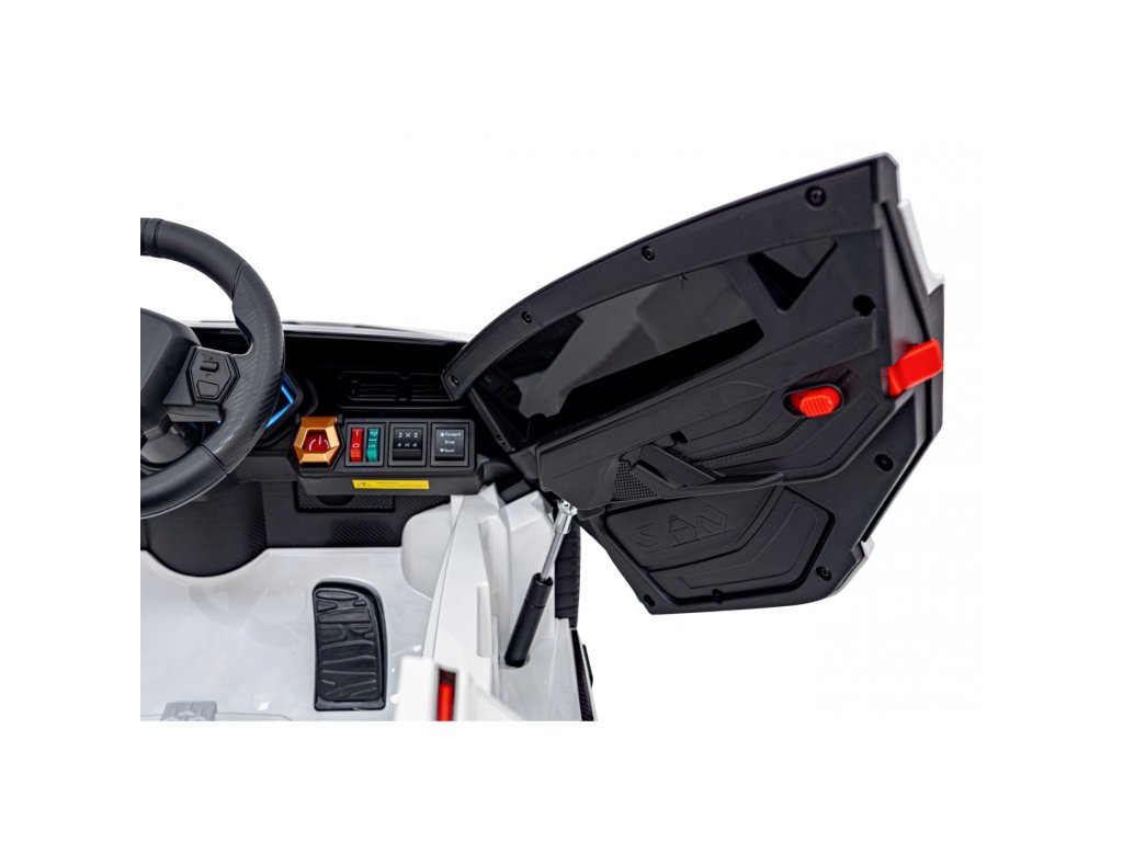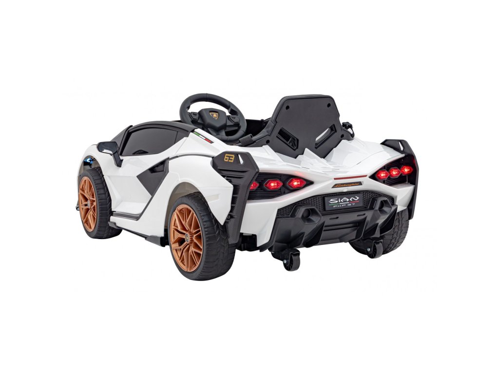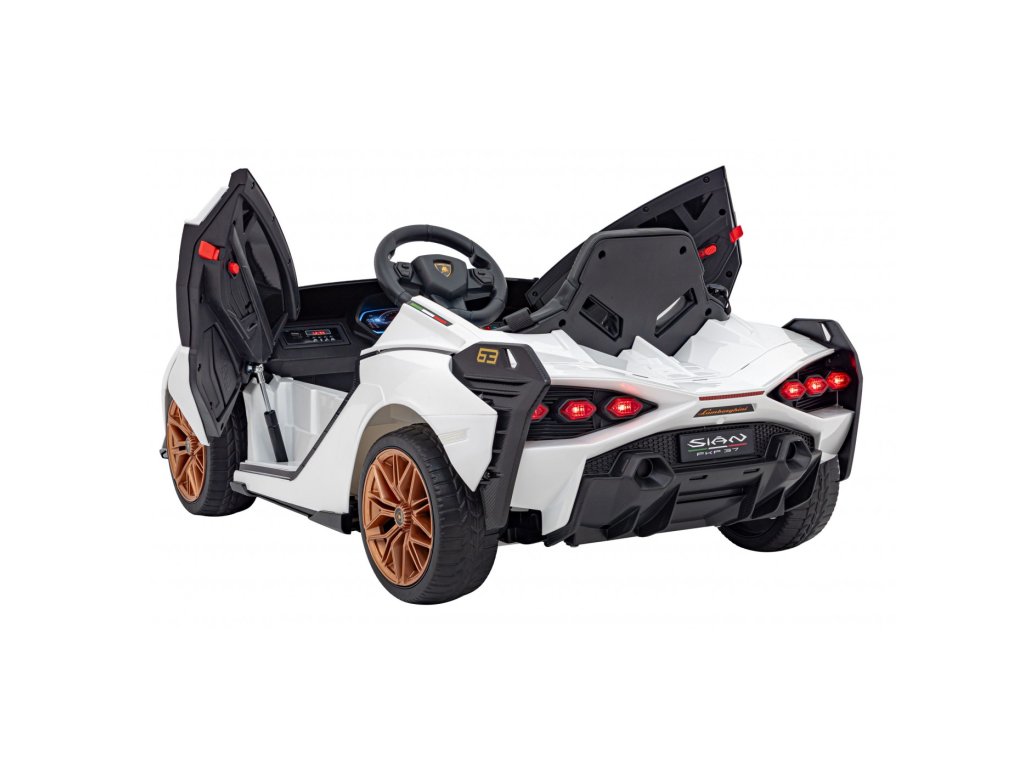 Mașina electrică Lamborghini Sian are patru motoare cu o putere totală de 106W și o baterie cu o capacitate de 12V 7Ah. Roțile din spumă EVA și un scaun acoperit cu piele ecologică asigură o călătorie confortabilă. Panoul muzical cu intrare MP3, USB, AUX și card SD va face cu siguranță călătoria mai plăcută pentru copil . Capacitate de transport mașina de jucărie are 25 kg . Mașina de jucărie are iluminare LED față și spate și uși care se deschid.