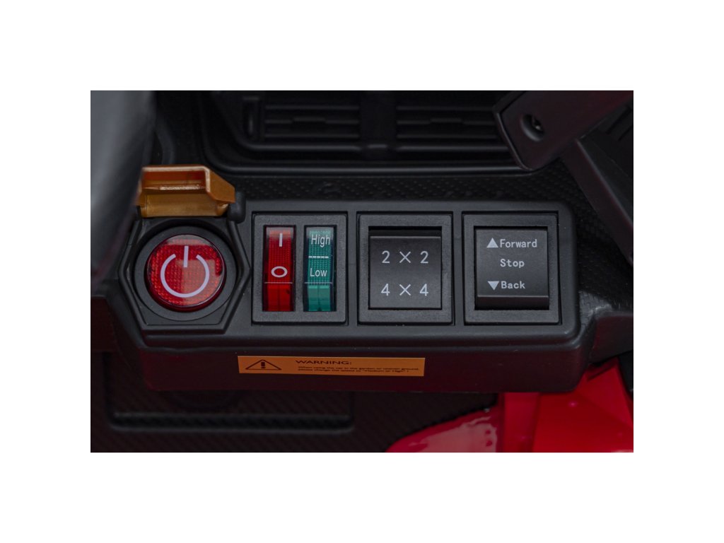 Mașina de jucărie poate fi controlată cu ajutorul unei telecomenzi, care poate fi folosită pentru a regla viteza vehiculului, pentru a schimba direcția de mers sau pentru a folosi butonul de siguranță Stop , care oprește imediat vehiculul. Vehiculul este echipat cu o funcție de frână automată, care este activată atunci când piciorul este eliberat de pedala de accelerație. În plus , centurile de siguranță vor avea grijă de siguranță.