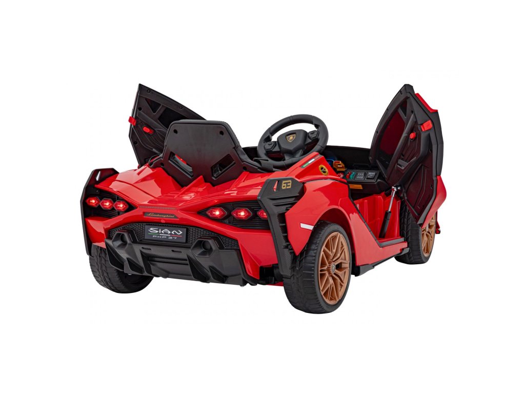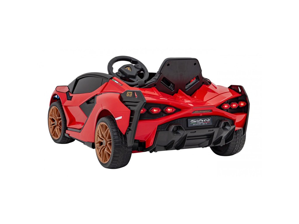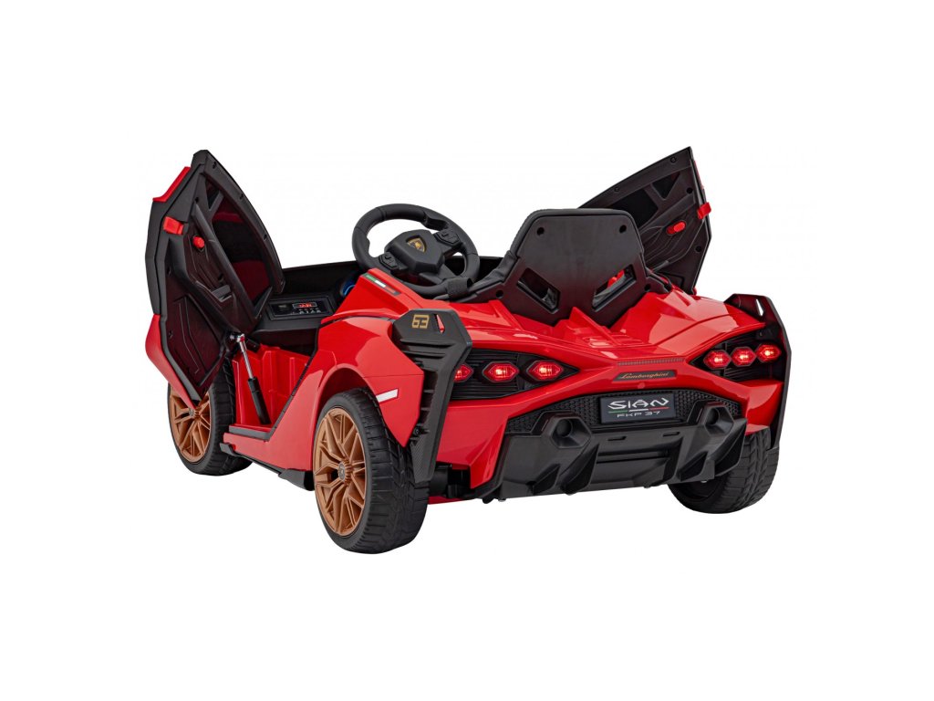 Mașina electrică Lamborghini Sian are patru motoare cu o putere totală de 106W și o baterie cu o capacitate de 12V 7Ah. Roțile din spumă EVA și un scaun acoperit cu piele ecologică asigură o călătorie confortabilă. Panoul muzical cu intrare MP3, USB, AUX și card SD va face cu siguranță călătoria mai plăcută pentru copil . Capacitate de transport mașina de jucărie are 25 kg . Mașina de jucărie are iluminare LED față și spate și uși care se deschid.