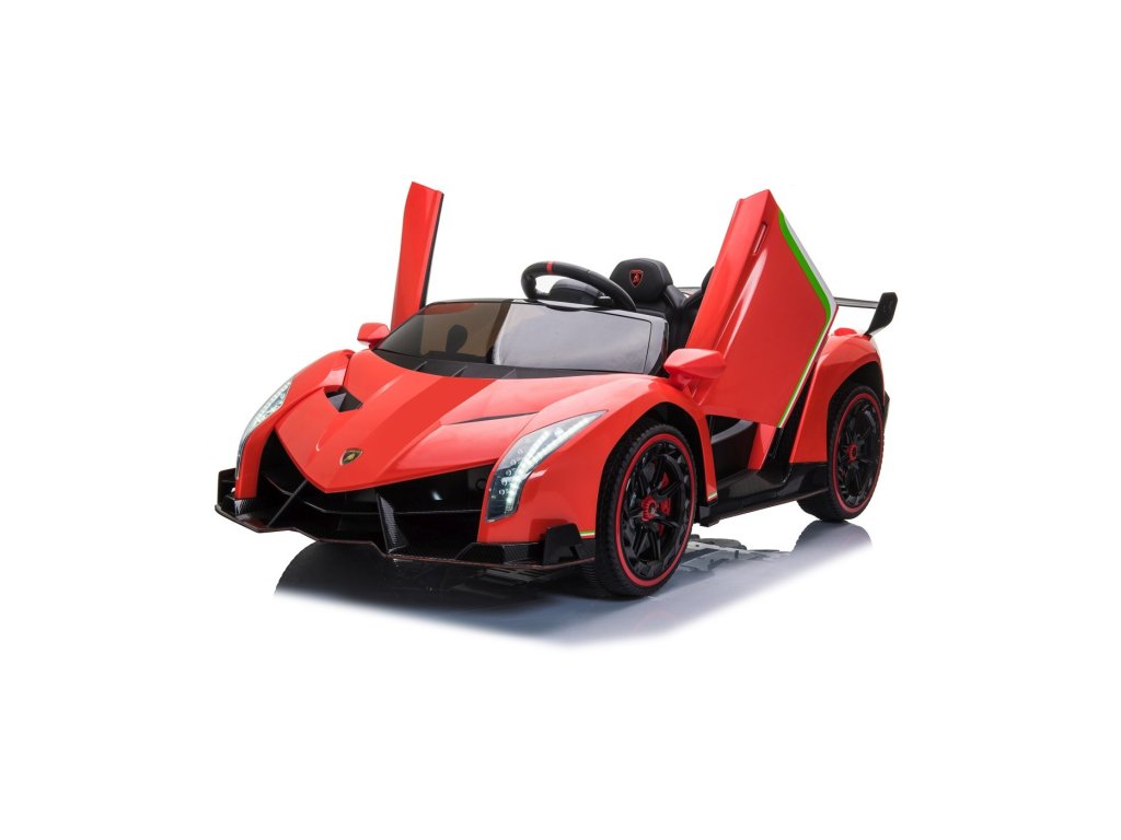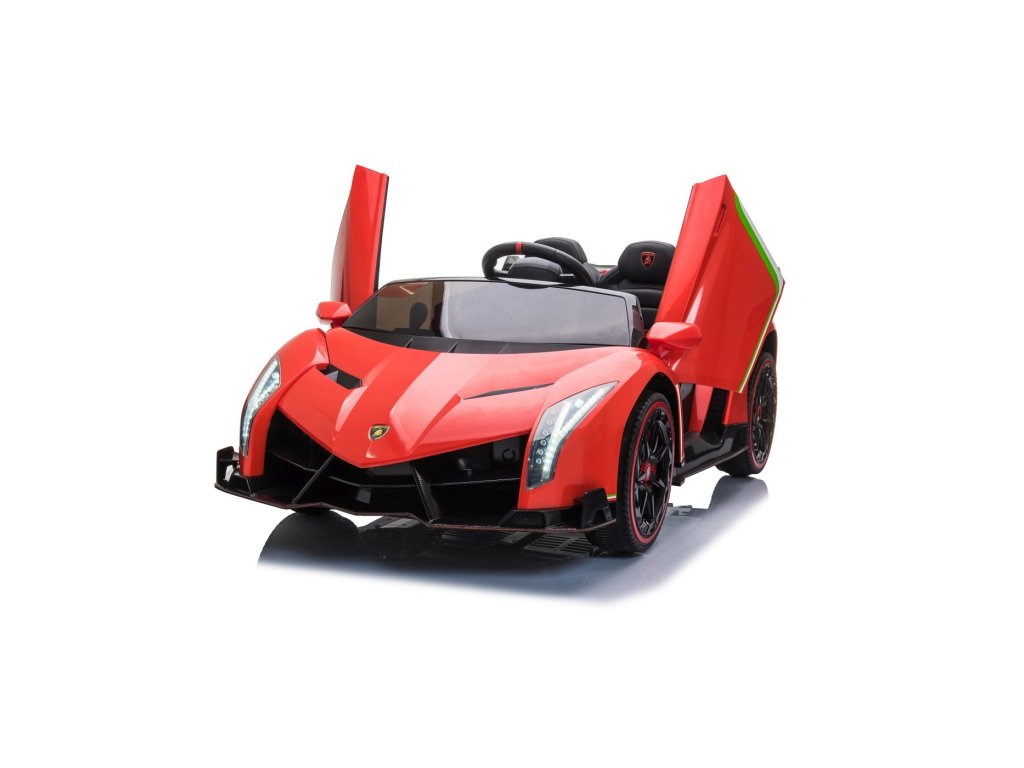 Mașina electrică de jucărie pentru copii Lamborghini Veneno este o combinație unică de design luxos, performanță și confort. Cu patru motoare de 45 W și două baterii de 12 V 7 Ah , oferă suficientă putere pentru conducerea rapidă înainte și înapoi la două viteze. Datorită funcției „pornire moale” , pornirea este lină și sigură chiar și pentru copiii mai mici.