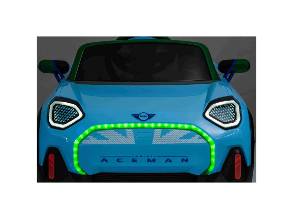 Mașina electrică de jucărie Mini Concept Aceman nu trebuie să lipsească din nici un garaj pentru copii. Mașina de jucărie este alimentată de o baterie de 12V 9Ah . Echipamentul include un scaun acoperit cu piele ecologica , roti din spuma EVA sau iluminare LED fata si spate . Sarcina maximă a căruciorului este de 30 kg . În timpul plimbării, copilul va fi cu siguranță fascinat de panoul muzical cu intrare USB, MP3, AUX și Bluetooth .