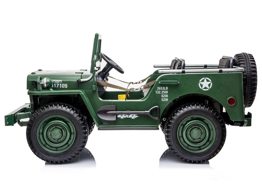 Mașină electrică pentru copii Jeep Willys 4x4 cu trei locuri verde