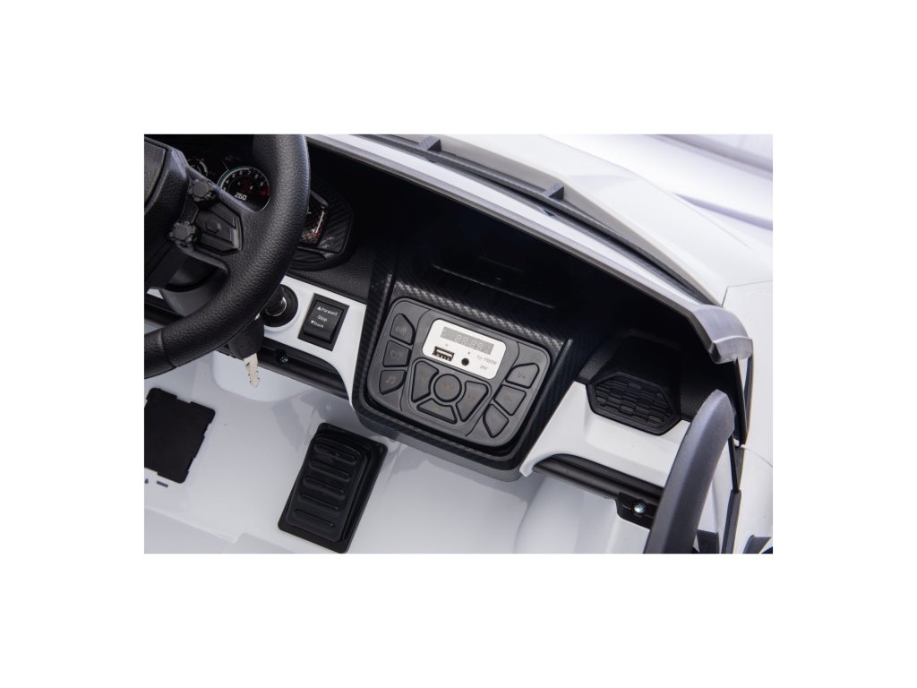 De asemenea, copilul se va bucura de plimbare datorită panoului muzical , care include un radio FM, MP3, intrare AUX, Bluetooth și port USB , împreună cu melodii preînregistrate. Siguranța în timpul conducerii este asigurată de centurile de siguranță și de pornire lină.