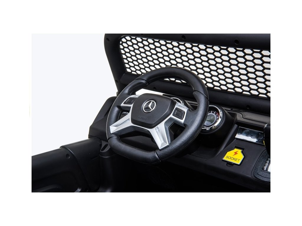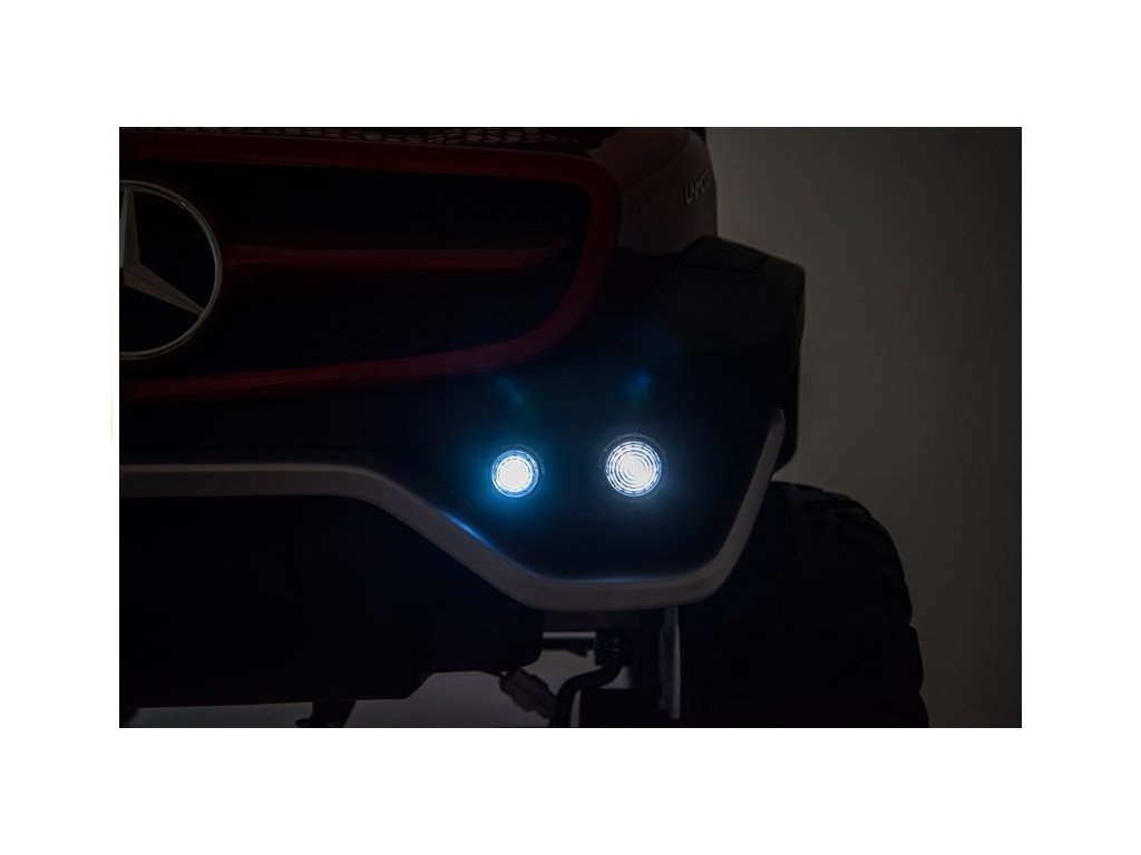 Mașina electrică Mercedes Unimog a fost concepută cu atenție la cele mai mici detalii, ceea ce va încânta fiecare tânăr pilot. Construcția durabilă și masivă, combinată cu materiale de înaltă calitate, sunt responsabile pentru o distracție extraordinară timp de mulți ani și pentru rezistența la deteriorare. Atractivitatea modelului este sporită de ușile care se deschid și roțile mari, care vor face conducerea pe terenuri accidentate și accidentate mult mai plăcută și aventuroasă.