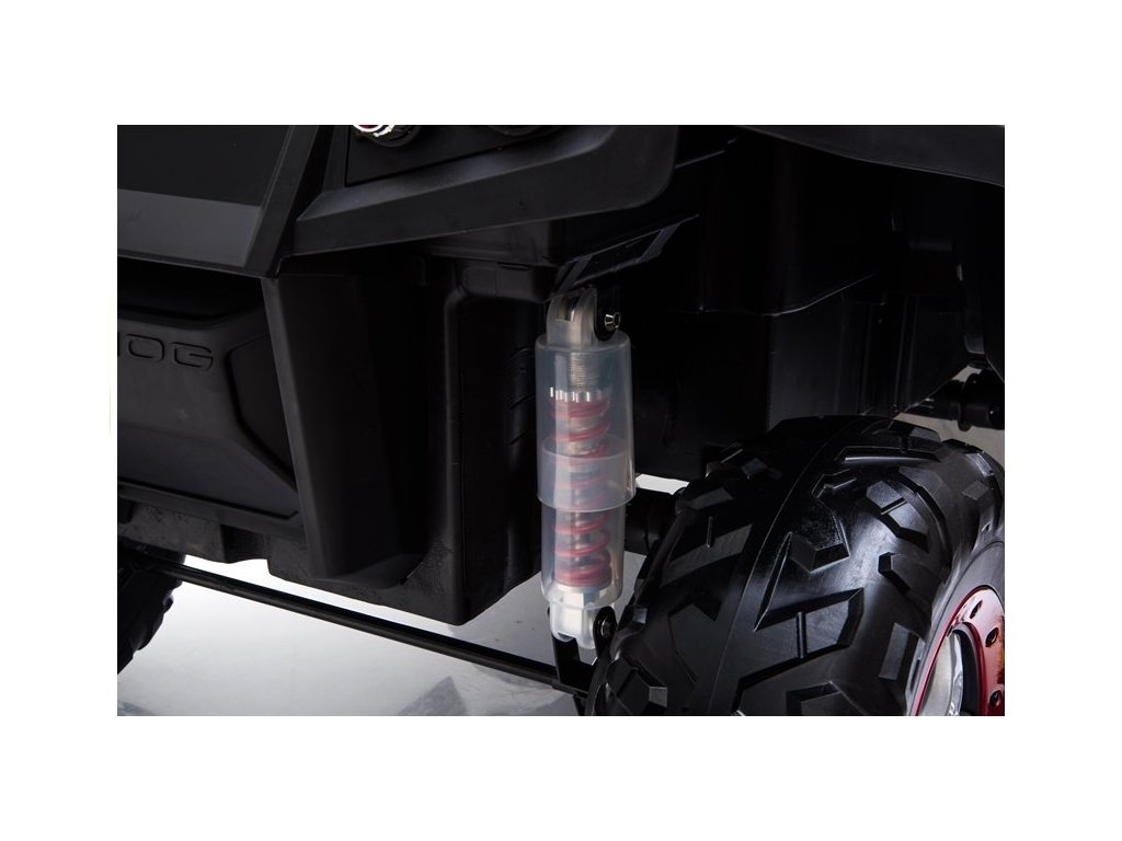 Patru motoare de 45W în combinație cu o baterie de 12V 14Ah permit conducerea cu o viteză de 3 până la 5 km/h, ceea ce cu siguranță va impresiona un șofer mic. Scaunul moale vă va permite să stați confortabil în timpul călătoriei, iar panoul muzical cu intrare USB va face călătoria și mai atractivă. Puteți controla oricând viteza jucăriei electrice folosind telecomanda. Acest model este destinat copiilor de la vârsta de 3 ani, dar și șoferii mai tineri îl pot folosi sub supravegherea părinților.