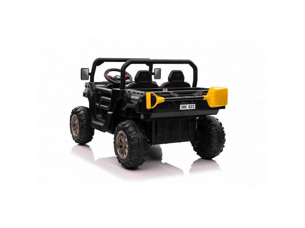 Mașina electrică de jucărie pentru copii Pick-Up Speed 900 este destinată tuturor copiilor cu o capacitate de încărcare de până la 50 kg . Este echipat cu patru motoare cu o putere totala de 180W si, impreuna cu rotile din spuma EVA , poate face fata diferitelor tipuri de suprafete. Copilul stă într-un scaun confortabil din piele ecologică moale.