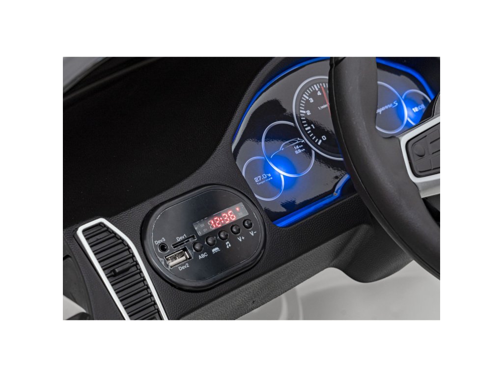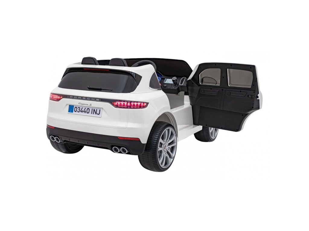Mașina electrică Porsche Cayenne S are două motoare cu o putere totală de 70W și o baterie cu o capacitate de 12V 7Ah. Rotile din spuma EVA si un scaun acoperit cu piele ecologica asigura o plimbare confortabila. Panoul muzical va face cu siguranță călătoria mai plăcută pentru copil Intrare MP3, USB, AUX și card SD . Capacitate de transport mașina de jucărie are 30 kg . Mașina de jucărie are iluminare LED față și spate și uși care se deschid.