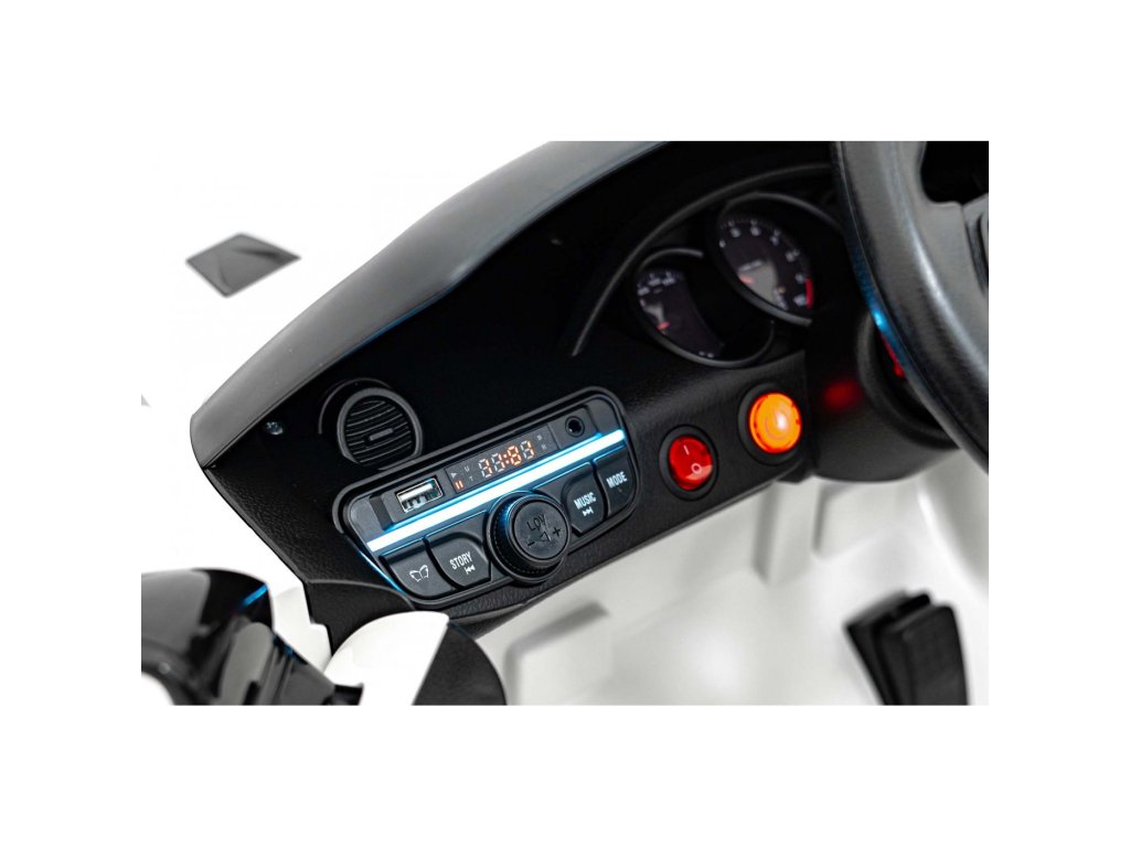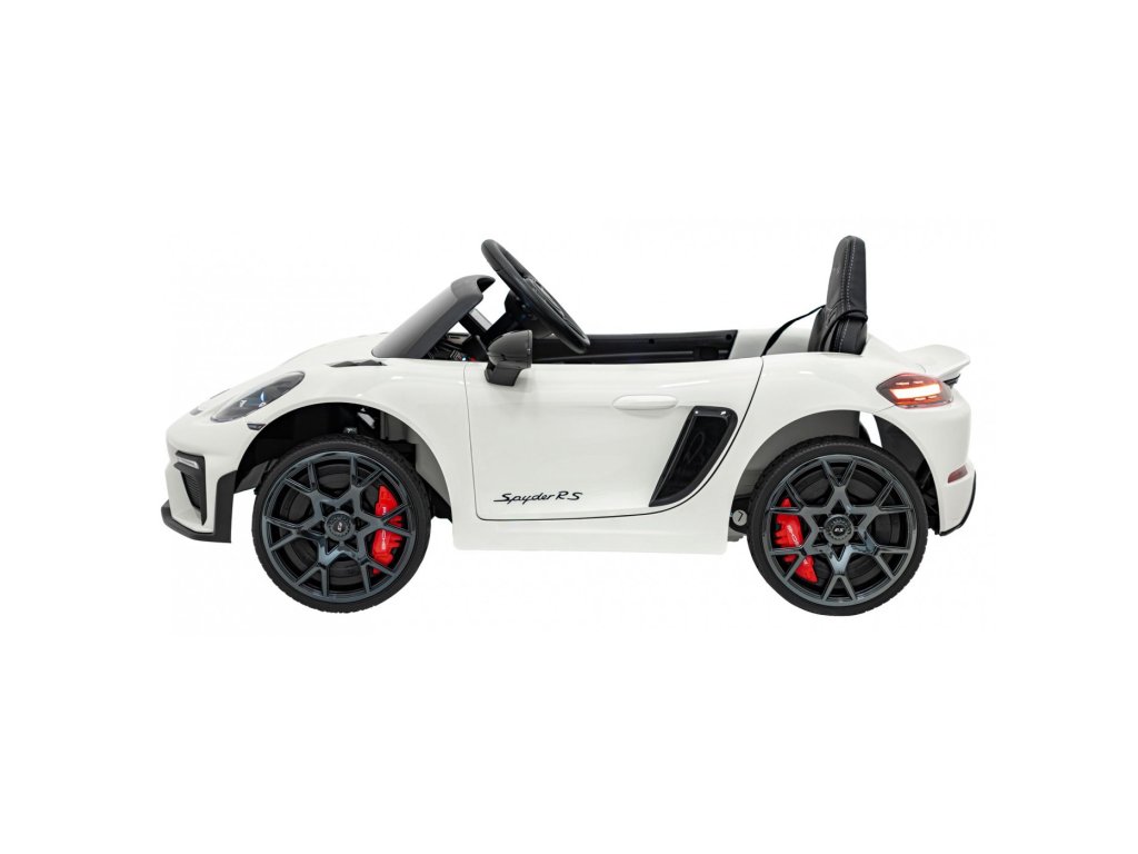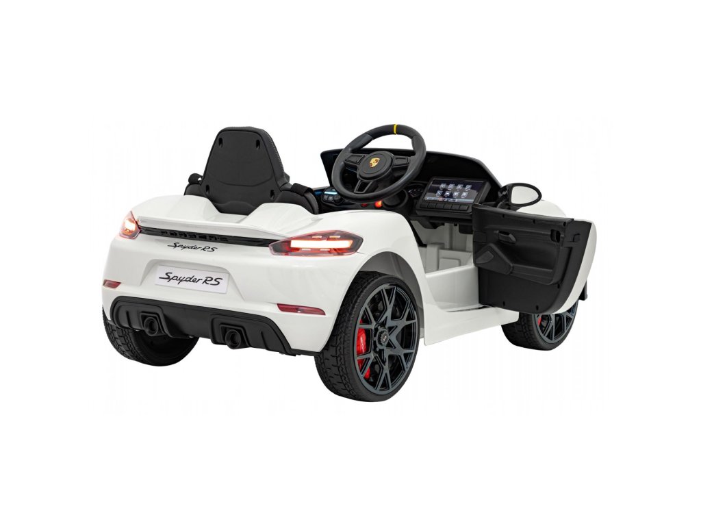 Mașina electrică Porsche Spyder RS 718 are două motoare cu o putere totală de 90W și o baterie cu o capacitate de 12V 7Ah. Roțile din spumă EVA și un scaun acoperit cu piele ecologică asigură o călătorie confortabilă. Panoul muzical cu va face cu siguranță călătoria mai plăcută pentru copil MP3, USB, AUX, Bluetooth și Radio . Capacitate de transport mașina de jucărie are 30 kg . Mașina de jucărie are iluminare LED față și spate și uși care se deschid.