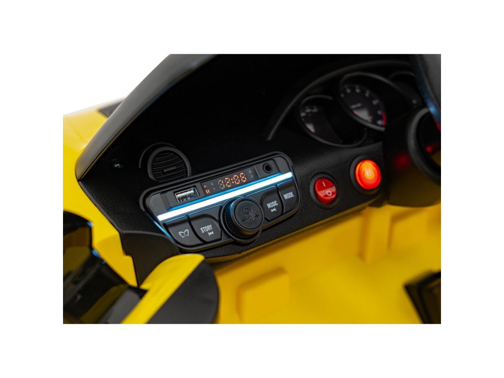 Mașina electrică Porsche Spyder RS 718 are două motoare cu o putere totală de 90W și o baterie cu o capacitate de 12V 7Ah. Roțile din spumă EVA și un scaun acoperit cu piele ecologică asigură o călătorie confortabilă. Panoul muzical cu va face cu siguranță călătoria mai plăcută pentru copil MP3, USB, AUX, Bluetooth și Radio . Capacitate de transport mașina de jucărie are 30 kg . Mașina de jucărie are iluminare LED față și spate și uși care se deschid.