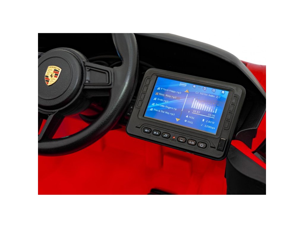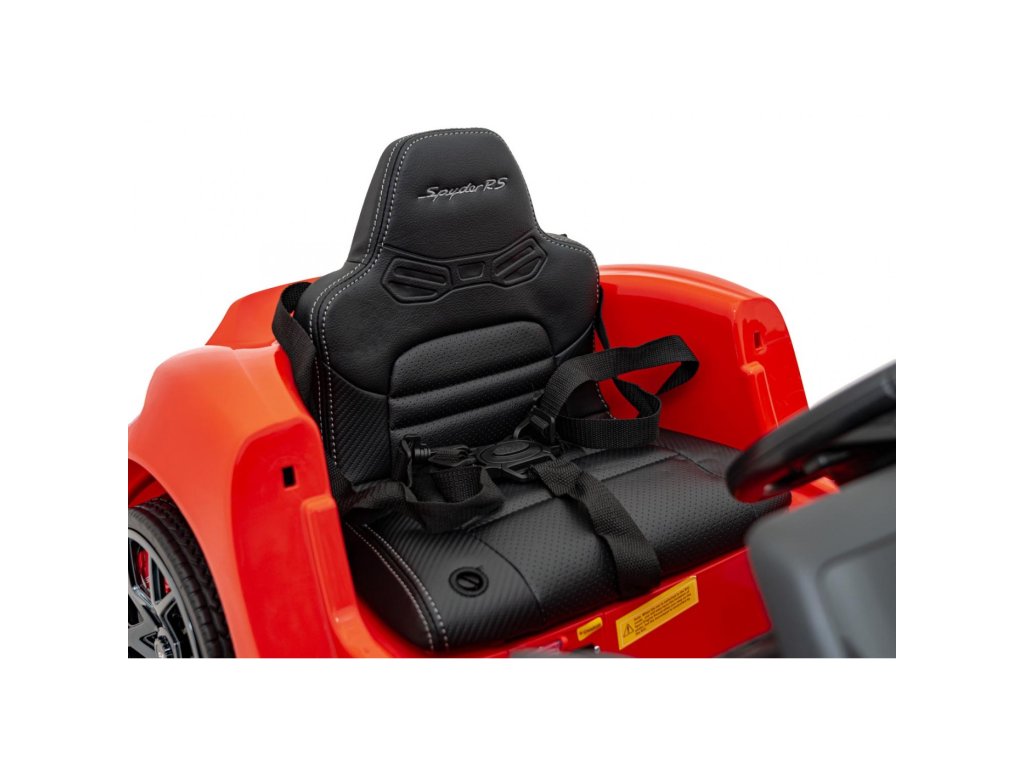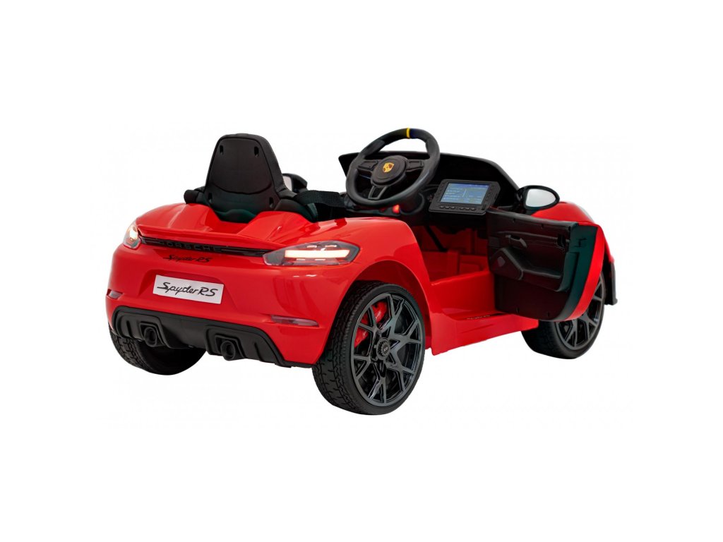 Mașina electrică Porsche Spyder RS 718 are două motoare cu o putere totală de 90W și o baterie cu o capacitate de 12V 7Ah. Rotile din spuma EVA si un scaun acoperit cu piele ecologica asigura o plimbare confortabila. Panoul muzical cu va face cu siguranță călătoria mai plăcută pentru copil MP3, MP4, USB, AUX, Bluetooth și radio . Capacitate de transport mașina de jucărie are 30 kg . Mașina de jucărie are iluminare LED față și spate și uși care se deschid.