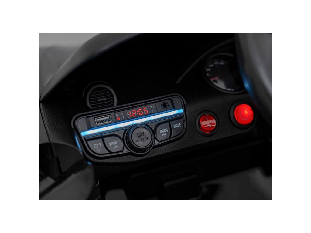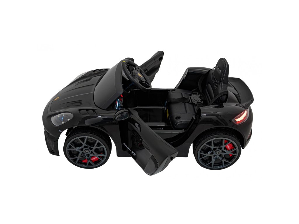 Mașina electrică Porsche Spyder RS 718 are două motoare cu o putere totală de 90W și o baterie cu o capacitate de 12V 7Ah. Roțile din spumă EVA și un scaun acoperit cu piele ecologică asigură o călătorie confortabilă. Panoul muzical cu va face cu siguranță călătoria mai plăcută pentru copil MP3, USB, AUX, Bluetooth și Radio . Capacitate de transport mașina de jucărie are 30 kg . Mașina de jucărie are iluminare LED față și spate și uși care se deschid.