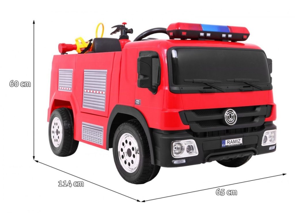 O mașină electrică pentru copii în stilul unei mașini de pompieri clasice va încânta toți micii fani ai acestei profesii. Pe lângă un design frumos, mașina de jucărie oferă și multe funcții și echipamente bogate. Roțile din spumă EVA sunt silențioase și se ocupă de diferite tipuri de teren. Un alt element important sunt amortizoarele. Mașina de jucărie are iluminare LED și este echipată cu panou de sunet. Scaunul este din plastic cu centuri de siguranta. De asemenea, poți avea grijă de siguranța copilului tău, datorită telecomenzii. Nu numai copilul, ci întreaga familie se va distra mult cu această mașină de jucărie . Potrivit pentru copii de la 3 ani.