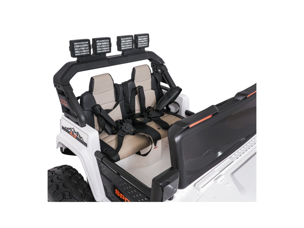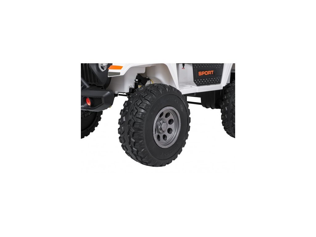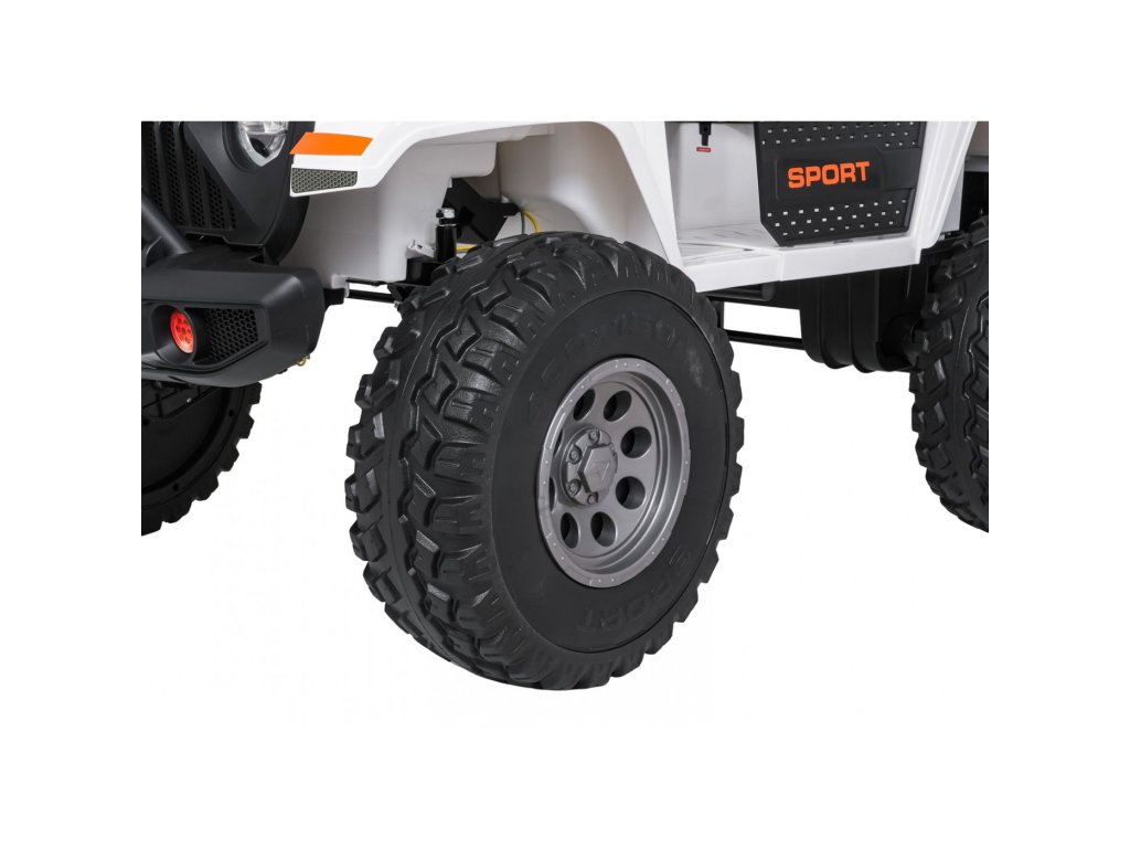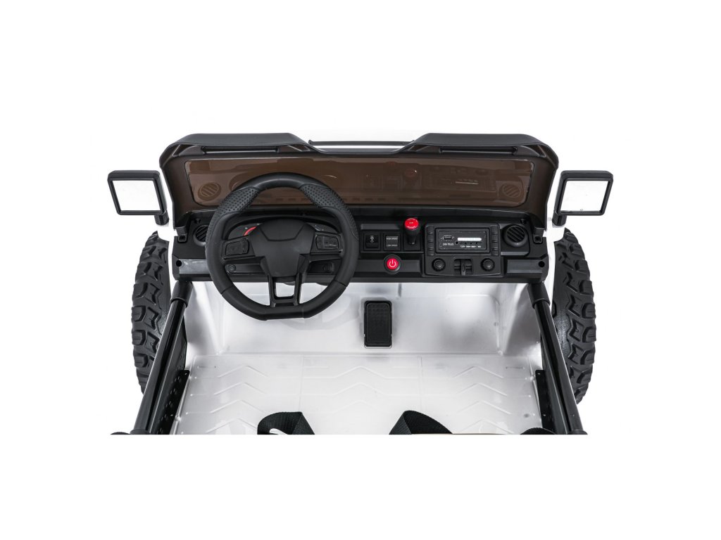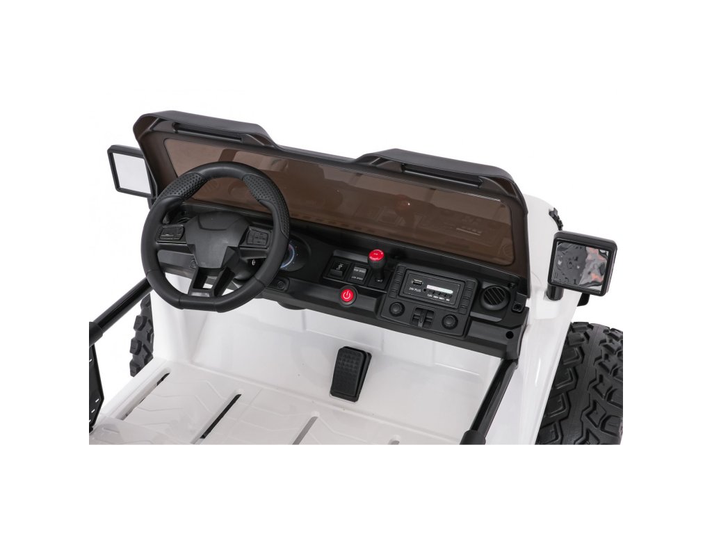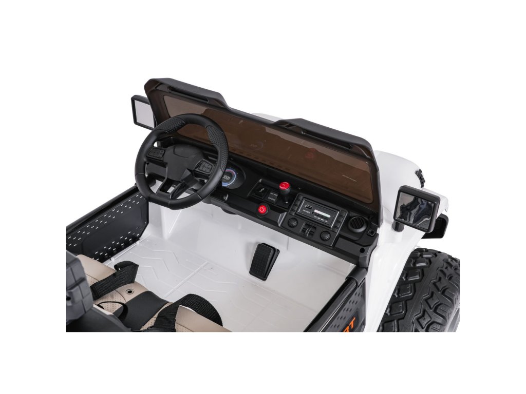 Mașinuța electrică Extreme Sport cu patru motoare cu o putere totală de 960W nu ar trebui să lipsească din garajul niciunui copil. Mașinuța este alimentată de o baterie cu o capacitate de 12V7Ah x2. Sarcina maximă a vehiculului este de 60 kg. În timpul plimbării, copilul va fi cu siguranță interesat de panoul muzical cu MP3, Bluetooth, USB, AUX, Radio și intrare pentru card SD .