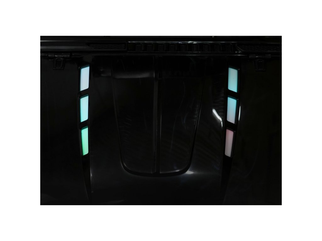 - Lumini LED frontale, mască iluminată din spate, cadru superior (alimentat cu baterii)