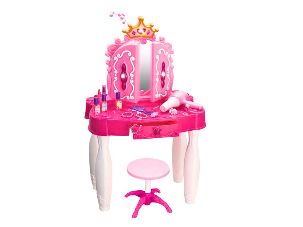 În plus, măsuța de toaletă este echipată cu o intrare MP3, care vă permite să redați muzica preferată în timpul jocului. Datorită acestui fapt, micuța prințesă poate petrece multe ore în fața oglinzii, își poate crea propriile basme și își poate îngriji frumusețea în ritmul melodiilor ei preferate.