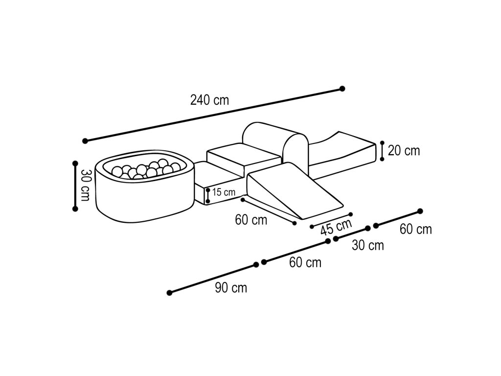 Locul nostru de joacă include un total de 5 elemente și 100 de mingi moi cu un diametru de 6 cm, ceea ce garantează posibilități nelimitate de joacă și descoperire pentru copilul dumneavoastră.