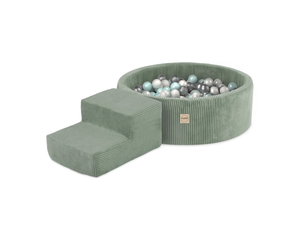 Mini teren de joacă cu piscină uscată 90 × 30 cm cu scări și 200 de bile, verde