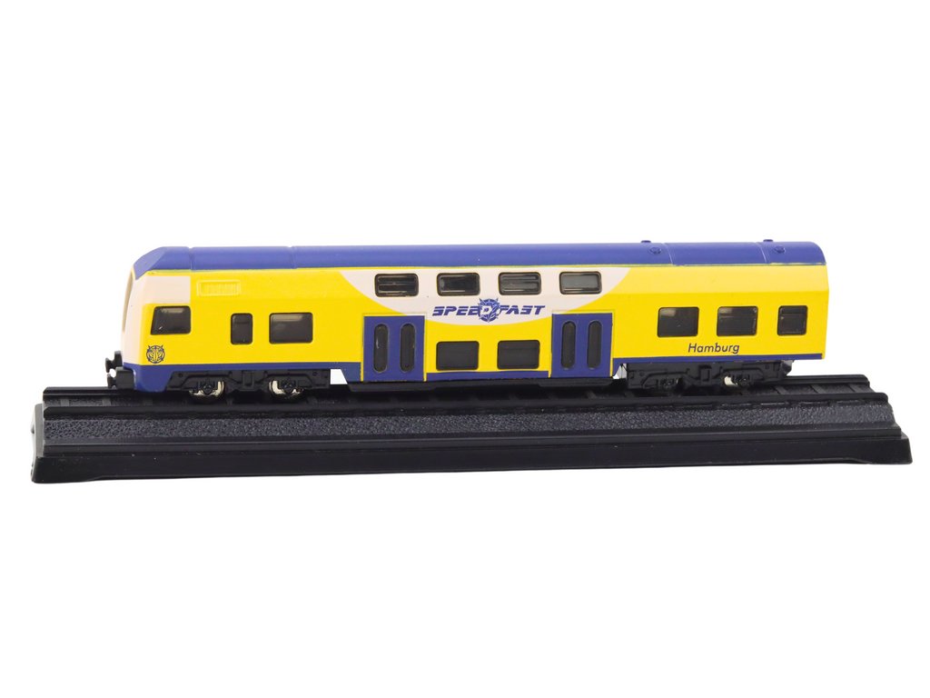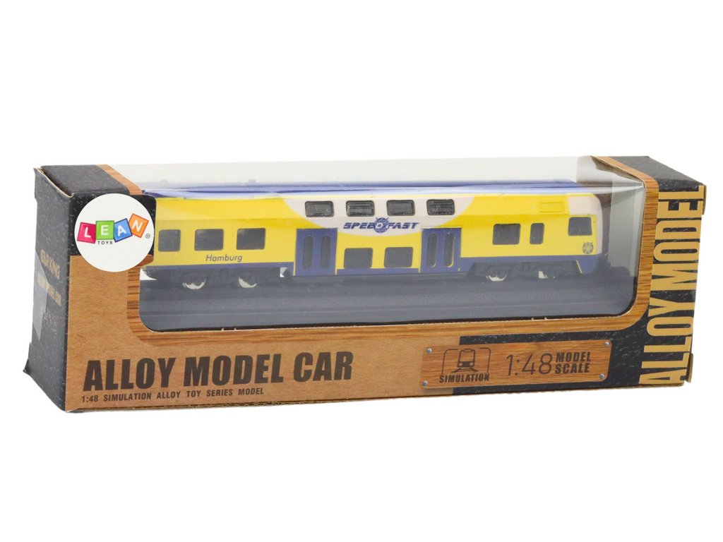 Modelul de tren în culoarea clasică galben-albastru atrage atenția și adaugă eleganță oricărei colecții. Fabricat din metal rezistent, asigură longevitate și un aspect realist. Proporțiile exact conservate la scara 1:48 fac din model un tren miniaturizat real. Elementele atent prelucrate, cum ar fi ferestrele, ușile și alte detalii, fac ca acest model să fie excepțional. Este un accesoriu indispensabil pentru orice colecție de modele de trenuri, care cu siguranță va deveni punctul său central.