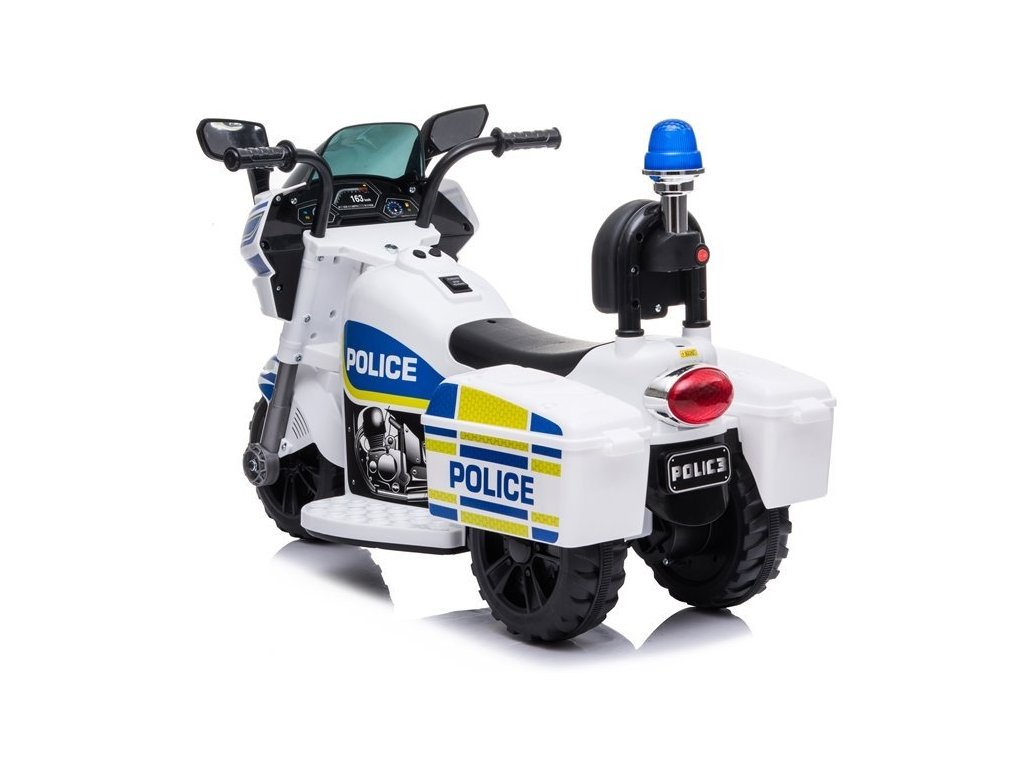 Motocicleta de poliție pentru copii va deveni vehiculul preferat al copilului tău. O motocicletă a poliției circulă cu o viteză de 2,5 până la 3 km/h. Motocicleta este destinata copiilor de la 3 ani, dar marimea corespunde copiilor de la 1 la 3 ani, sarcina maxima este de 25 kg.