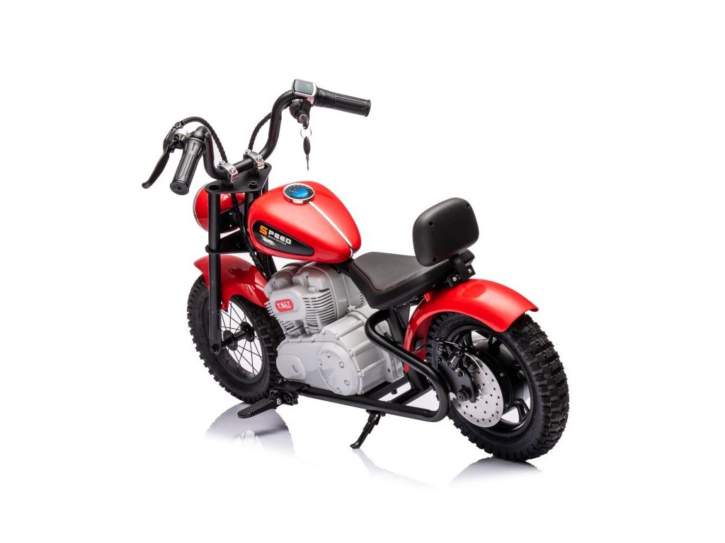 Motocicleta electrica A9902 nu trebuie să lipsească în nici un garaj pentru copii. Vehiculul este alimentat de două baterii cu capacitate 2x18V 9Ah . Sarcina maximă a căruciorului este de 80 kg . Lumina frontală LED și pornirea fără cheie vor interesa cu siguranță copilul .
