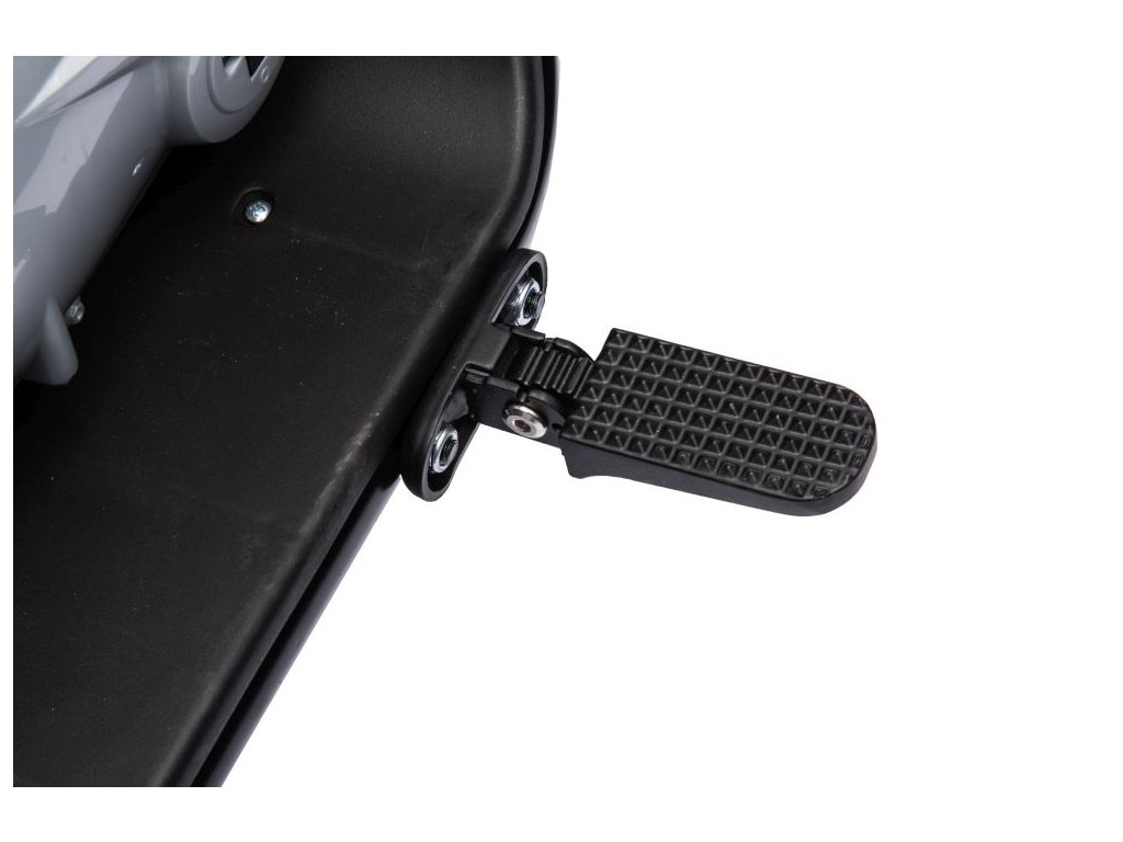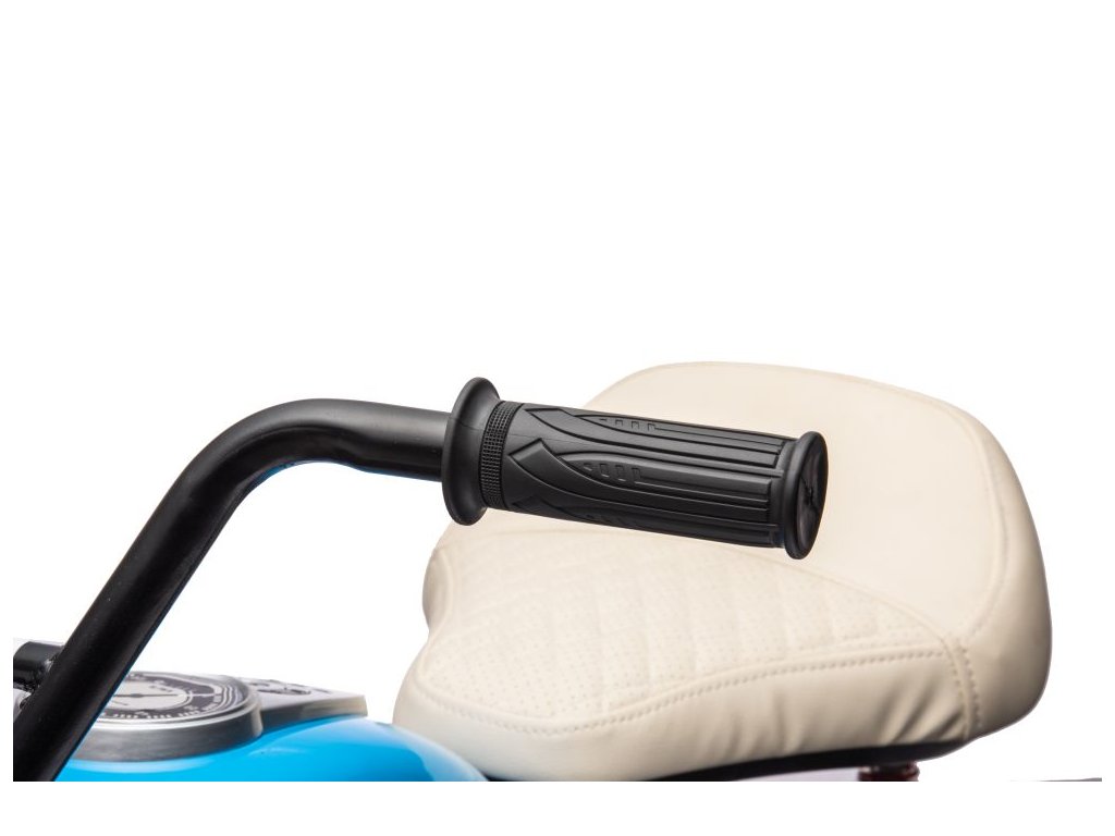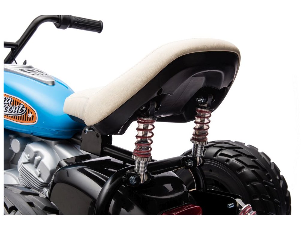 Motocicleta electrică pentru copii vine pe roți din spumă EVA , care sunt silențioase și nu deranjează la conducere. Copilul se va aseza intr-un scaun cu forma confortabila acoperit cu piele ecologica iar efectele sonore care pot fi redate folosind intrarea USB vor face cu siguranta calatoria mai placuta.