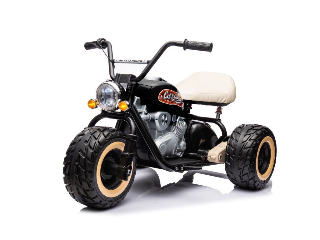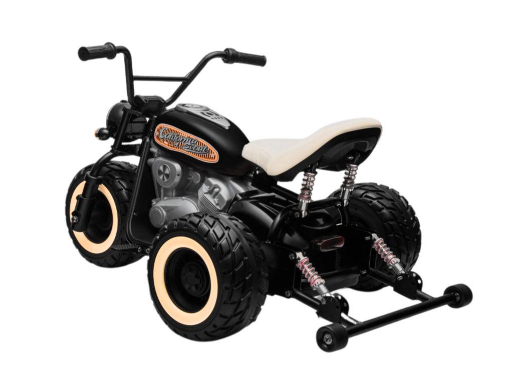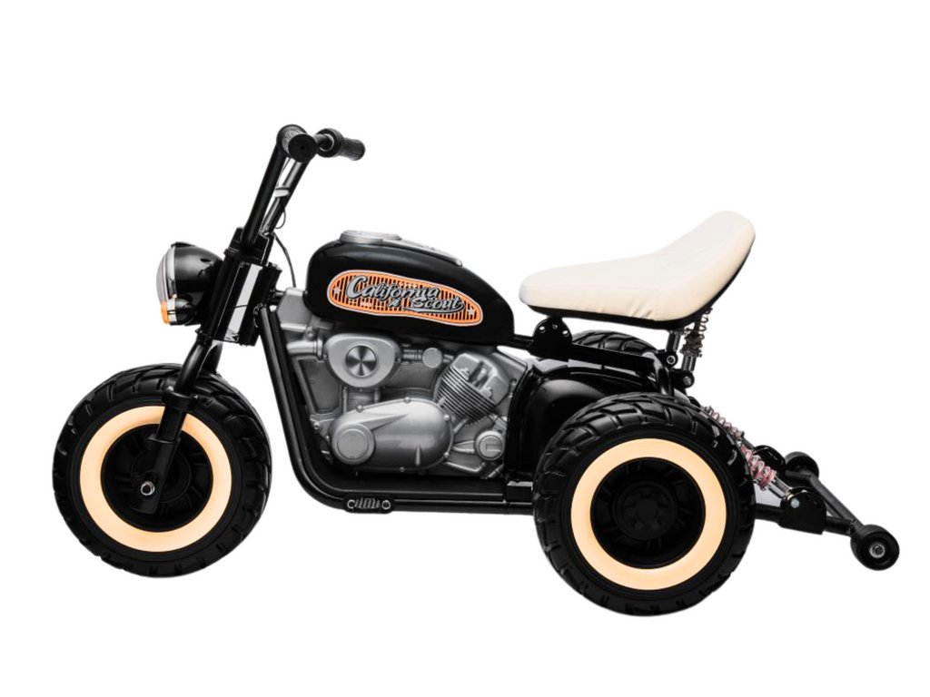 Motocicleta electrică pentru copii vine pe roți din spumă EVA , care sunt silențioase și nu deranjează la conducere. Copilul se va aseza intr-un scaun cu forma confortabila acoperit cu piele ecologica iar efectele sonore care pot fi redate folosind intrarea USB vor face cu siguranta calatoria mai placuta.