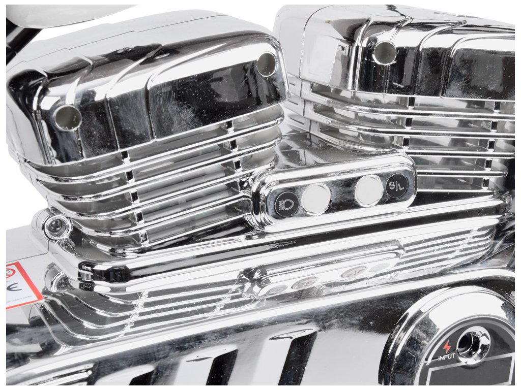 Motocicleta este pornită folosind un buton de pe mânerul ghidonului. După pornire, se va auzi un sunet realist al motorului. Există, de asemenea, butoane pentru pornirea muzicii, reglarea volumului și modificarea melodiilor redate . Există o intrare USB pe ghidon, datorită căreia puteți reda muzica preferată. Când se redă muzică, cilindrii de pe motor clipesc LED-urile colorate în timp cu muzica.