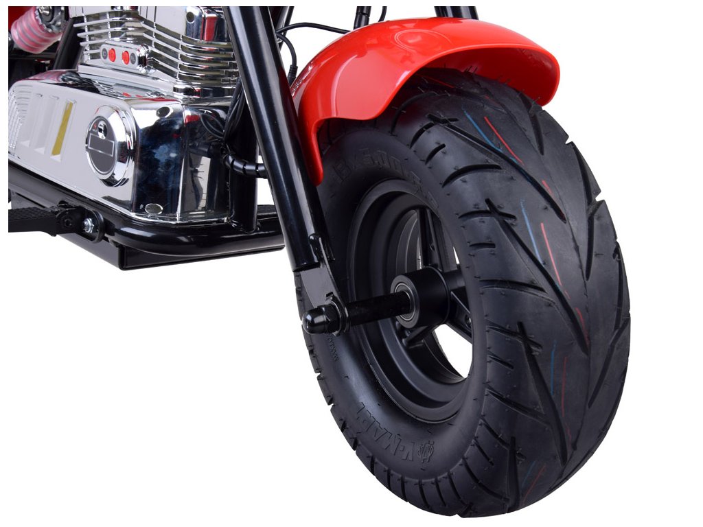 Motocicleta electrică Chopper 24V este o alegere excelentă pentru micii pasionați de motociclete. Motocicleta este alimentată de o baterie cu o capacitate de 24V 14Ah și are un motor puternic de 24V . Sarcina maximă a motocicletei este de 80 kg . Datorită controlului vitezei din mânerul accelerației, copilul poate adapta cursa la abilitățile sale.