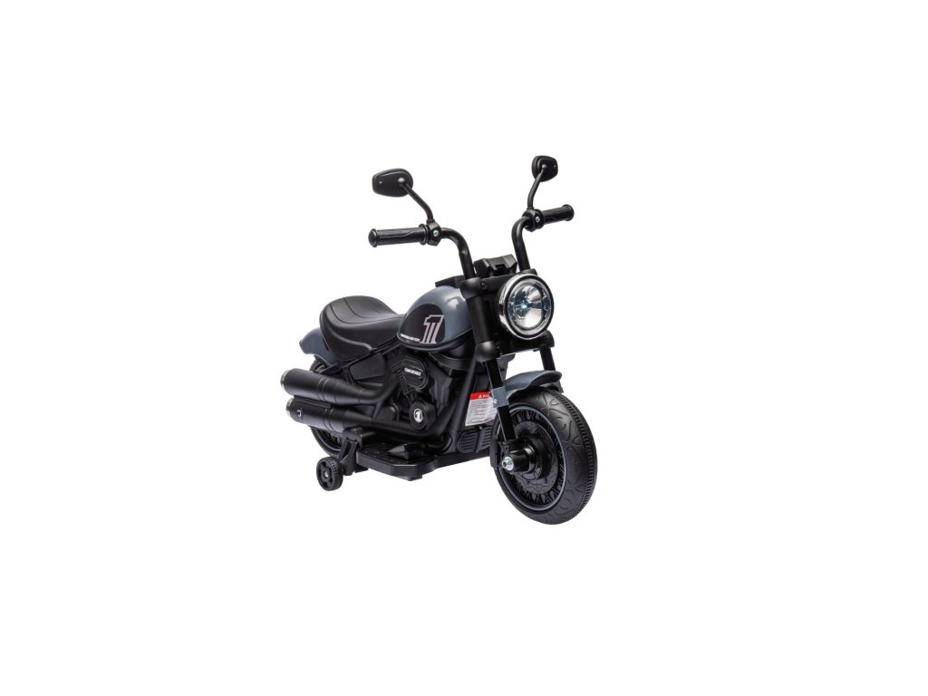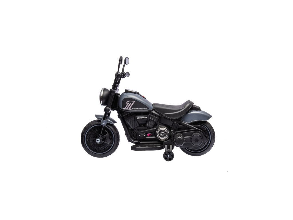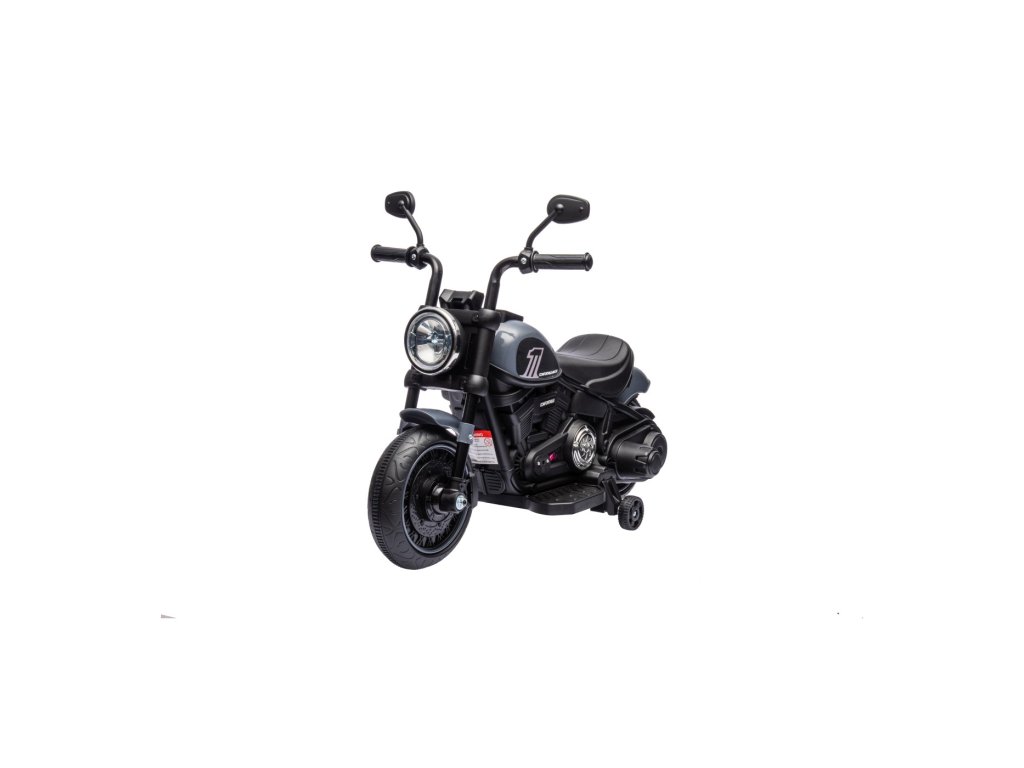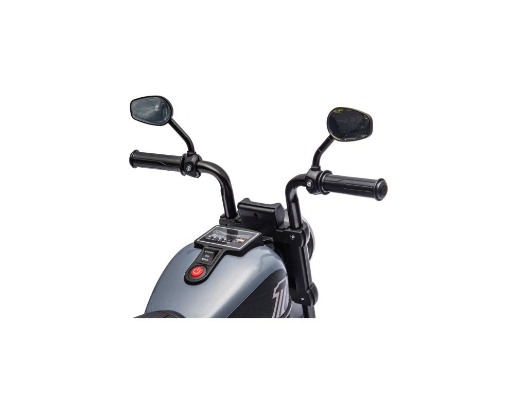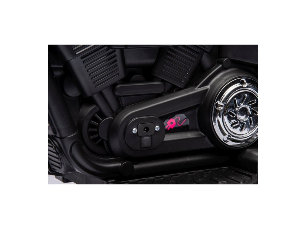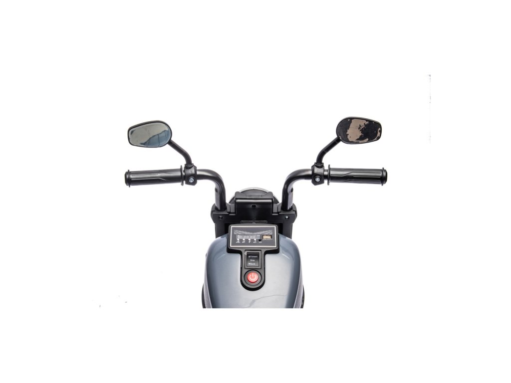 Motocicletă pentru copii Chopper Faster cu echipament bogat și design inovator. Interiorul mașinii de jucărie este echipat cu un scaun din plastic, un panou muzical cu Bluetooth, Radio , MP3, USB, SD, intrări AUX și muzică preinstalată. Luminile LED din față luminează drumul.