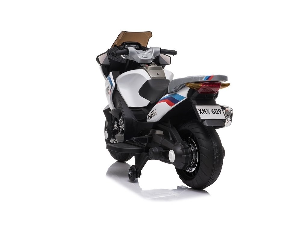 Motocicleta electrică pentru copii XMX609 este un accesoriu grozav pentru familiile cu copii la plimbare sau așezat în grădină. Motocicleta electrică pentru cursele mici este fabricată din plastic dur de înaltă calitate. Datorită conducerii unei motociclete pentru copii , copilul își dezvoltă abilitățile de conducere, precum și echilibrul. Motocicleta ruleaza inainte si inapoi si este dotata cu un scaun ergonomic care are grija de confortul copilului. Motocicleta poate dura aproximativ o oră fără încărcare. Incarcatorul pentru motocicleta este inclus in pachet. Motocicleta este destinata copiilor de la 3 ani si este dotata cu lumini LED astfel incat copilul sa poata fi vazut si dupa intuneric, pentru ca va dori sa petreaca ore intregi pe aceasta motocicleta pentru copii. Motocicleta circulă cu o viteză de 3-7 km/h. Motocicleta este certificată de marca europeană de siguranță CE.