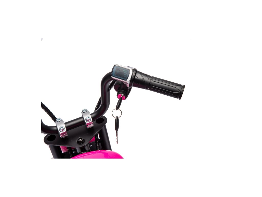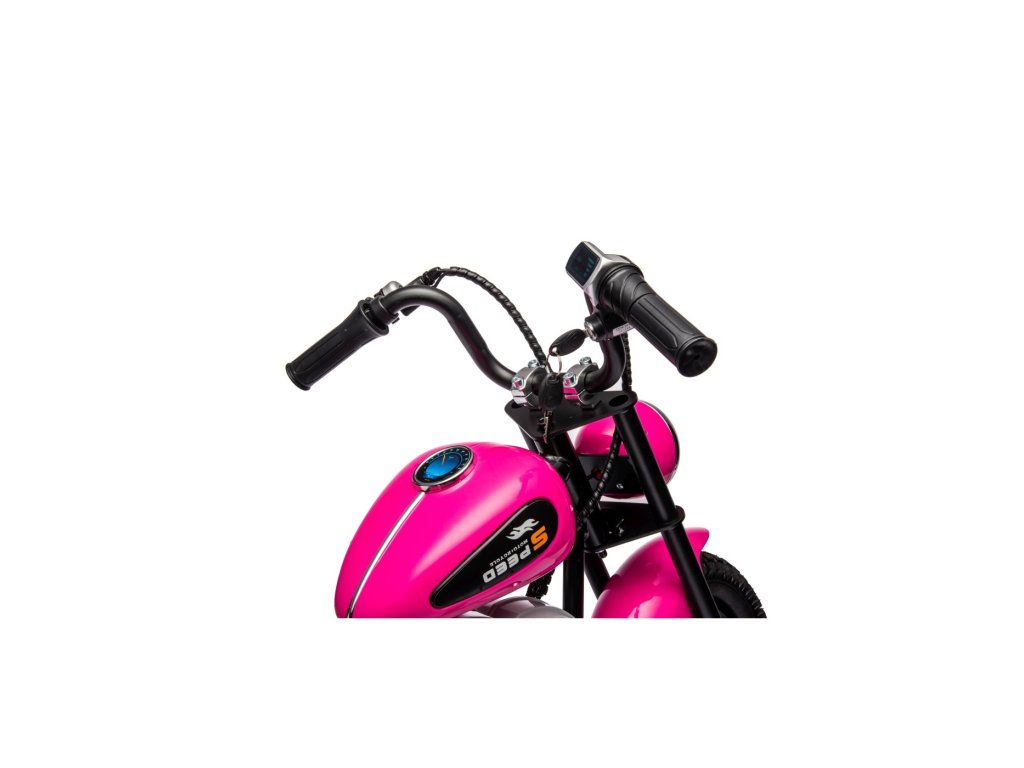 Motocicleta electrica SPEED Power nu trebuie sa lipseasca din nici un garaj pentru copii. Vehiculul este alimentat de o baterie de 24V 7Ah . Sarcina maximă a motocicletei este de 80 kg . In timpul plimbarei, copilul va fi cu siguranta impresionat de scaunul confortabil din piele ecologica si de clopotel.