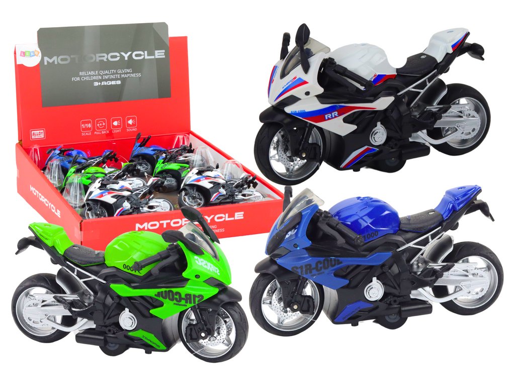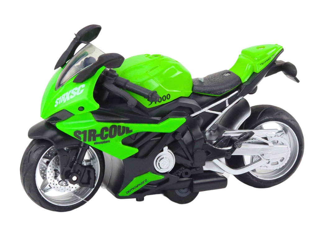 Motocicleta sport cu actionare cu frictiune 3 culori Alb Verde Albastru