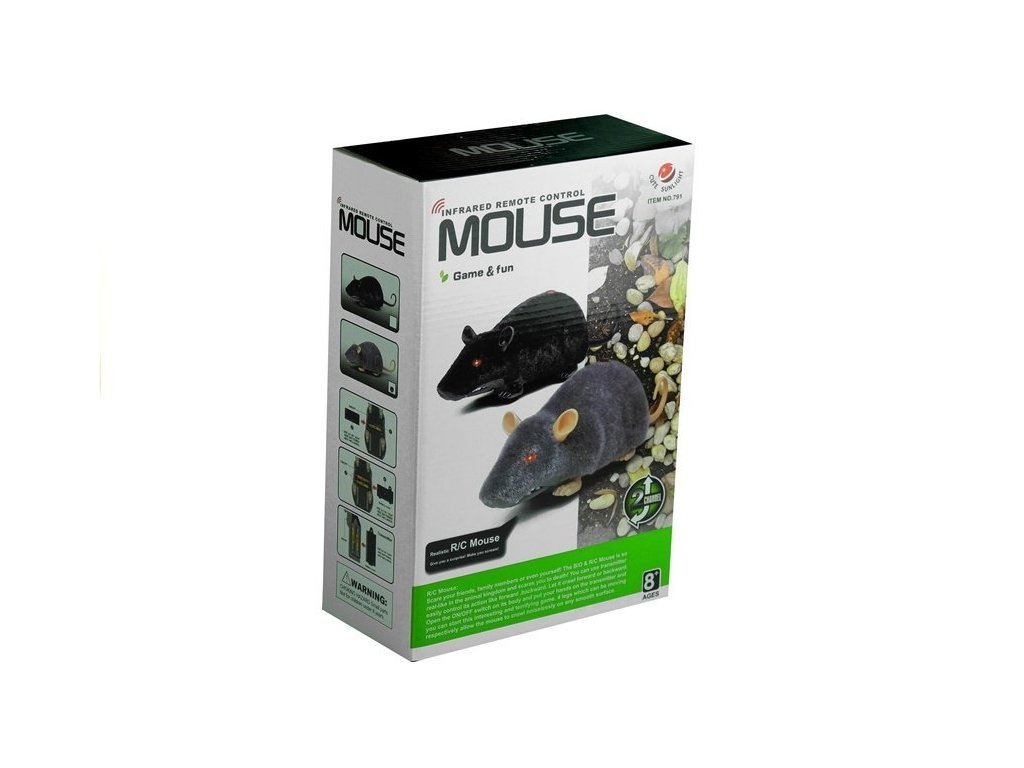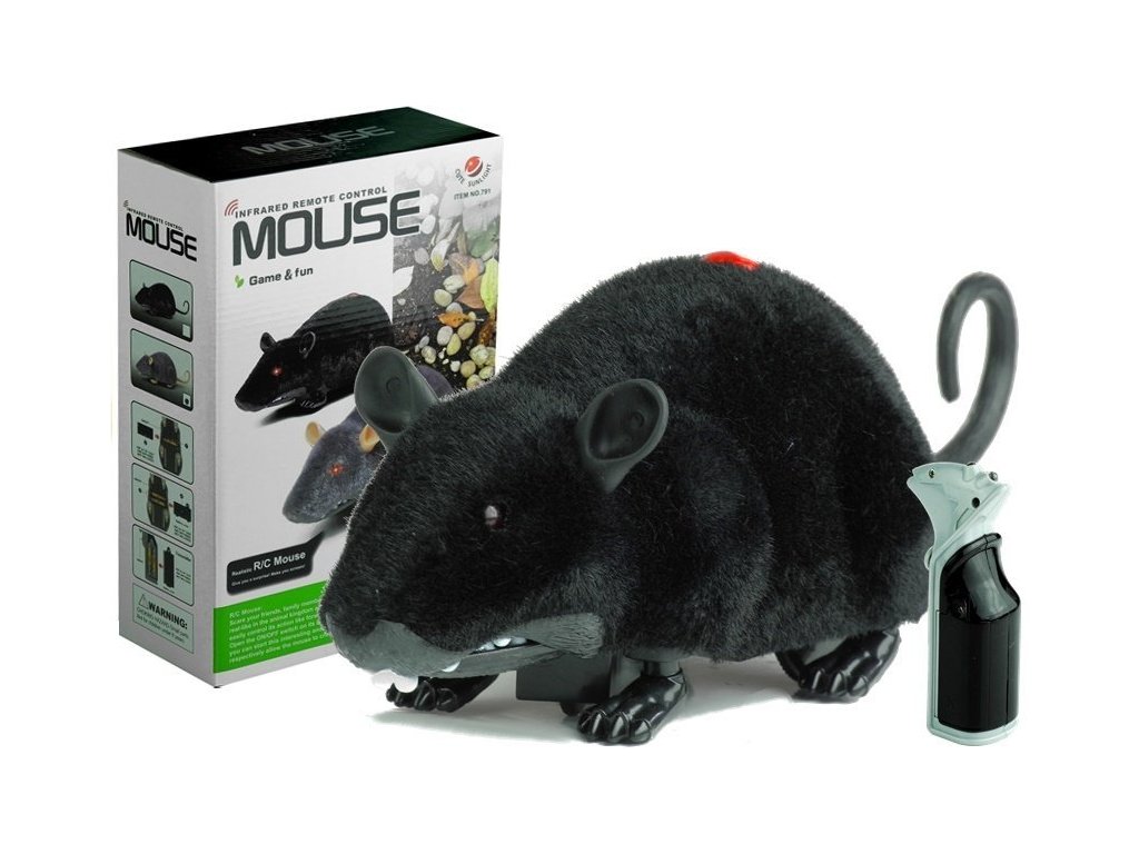 Mouse-ul cu telecomandă este o jucărie grozavă care imită cu fidelitate un animal adevărat. Este fabricat din plastic rezistent și acoperit cu un material moale care seamănă cu blana adevărată. Mouse-ul se deplasează cu ușurință pe suprafețe netede datorită roților și este controlat de o telecomandă cu infraroșu . Poate călări înainte și înapoi și își mișcă în mod realist picioarele și coada atunci când se mișcă. Perfect pentru farse distractive și joacă acasă.